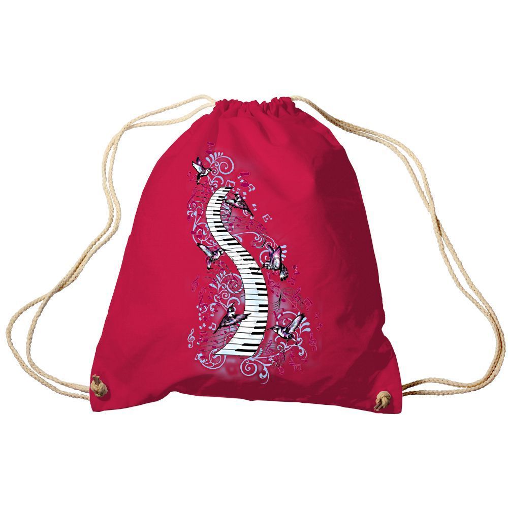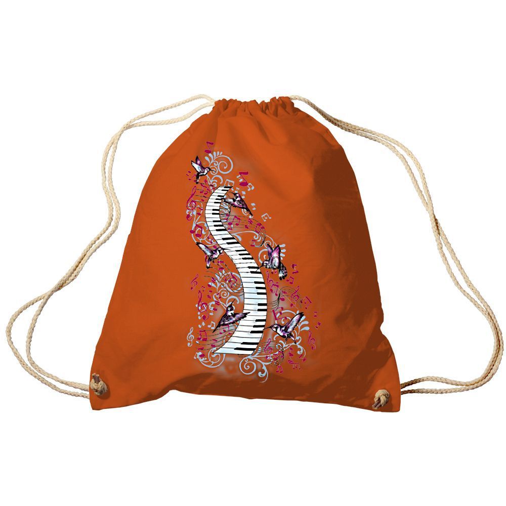 Trend-Bag Turnbeutel Sporttasche Rucksack mit Print -Klavier und Vögel - TB09018