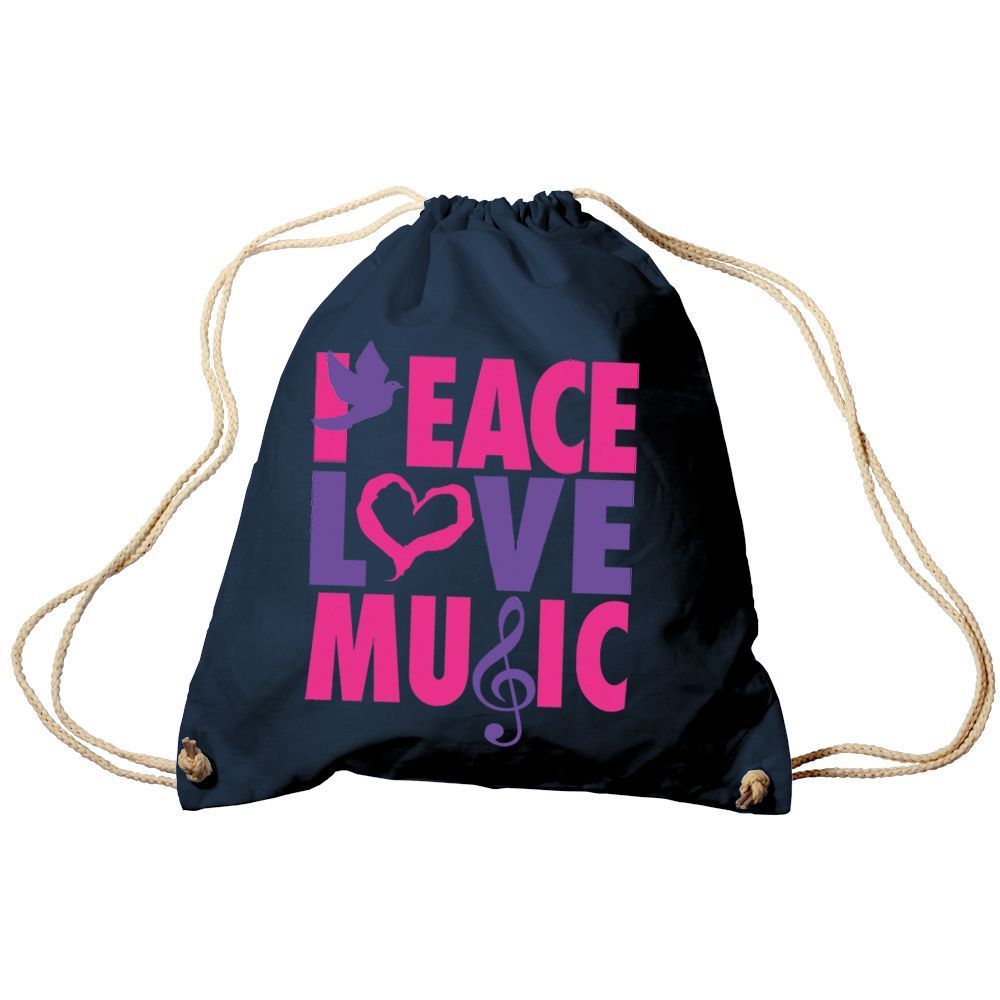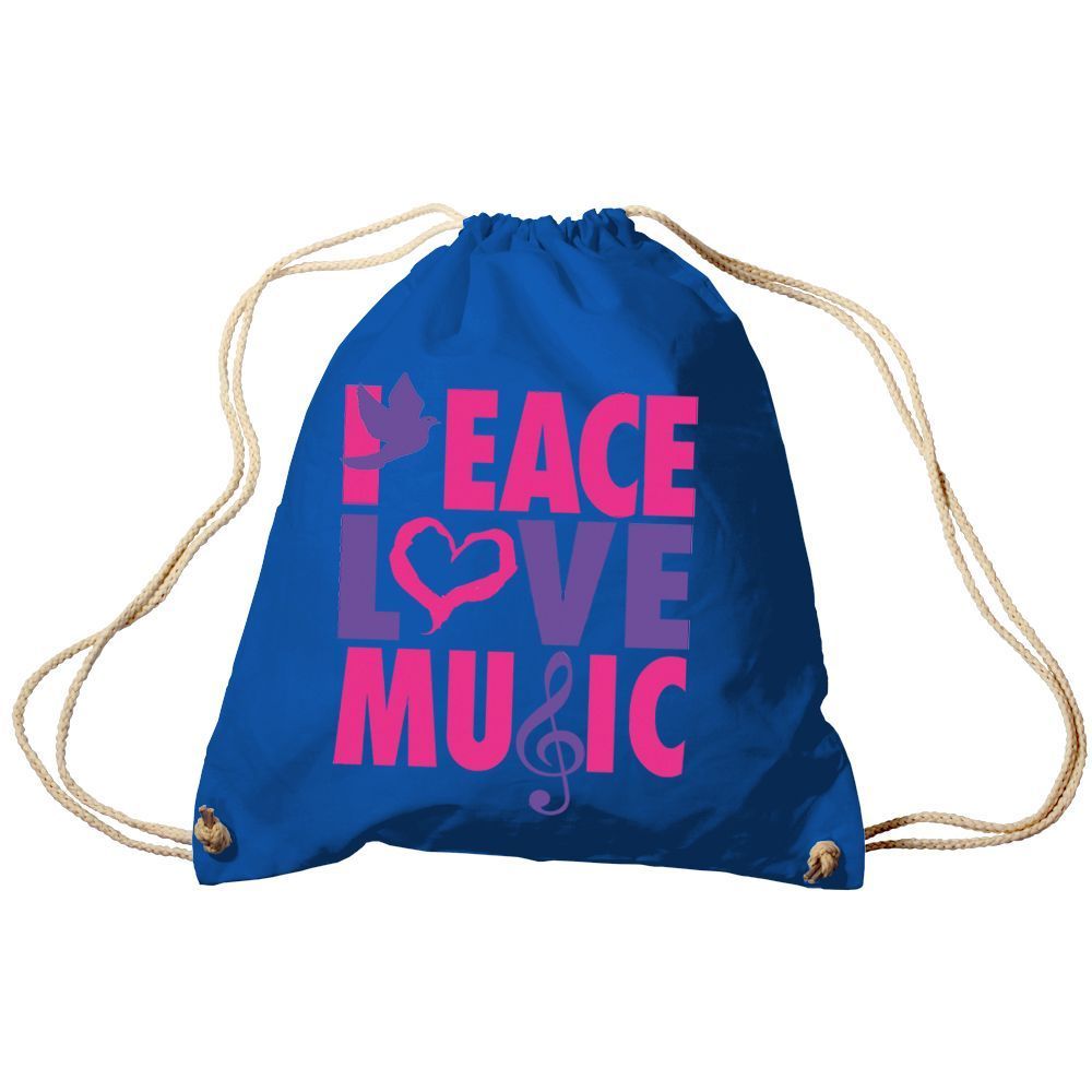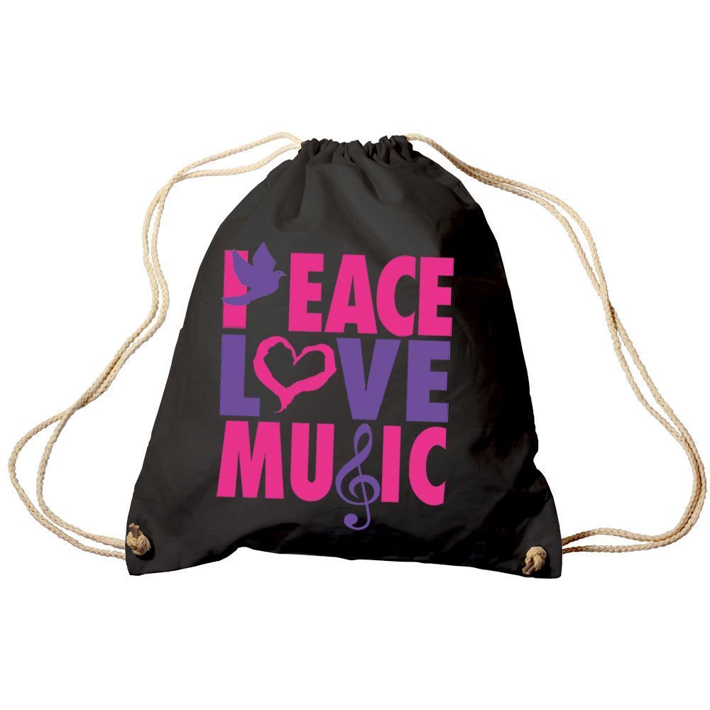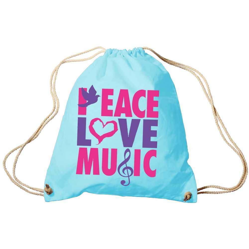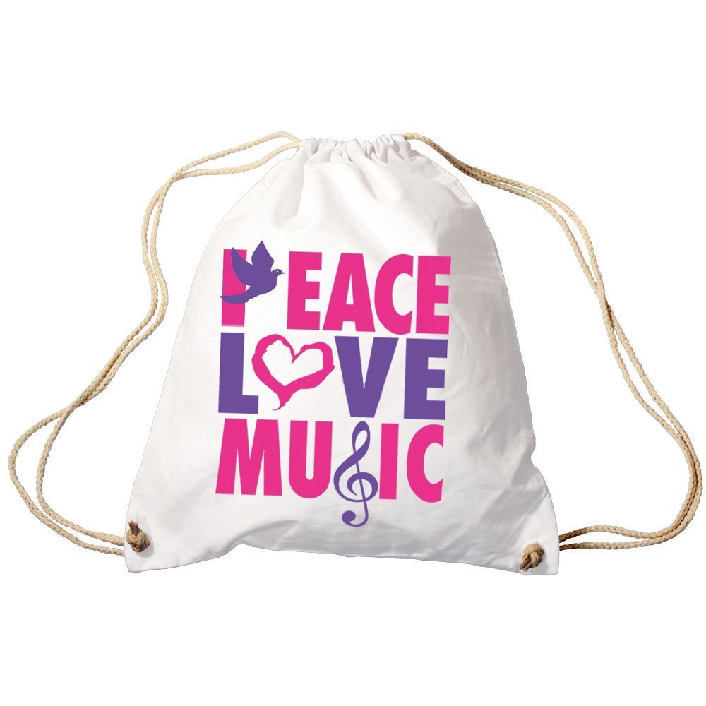 Trend-Bag Turnbeutel Sporttasche Rucksack mit Print - Peace Love Music - TB09017