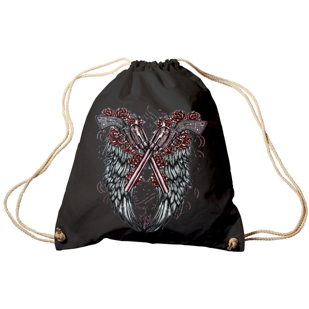 Trend-Bag Turnbeutel Sporttasche Rucksack mit Print - Revolver mit Flügeln hinterleg