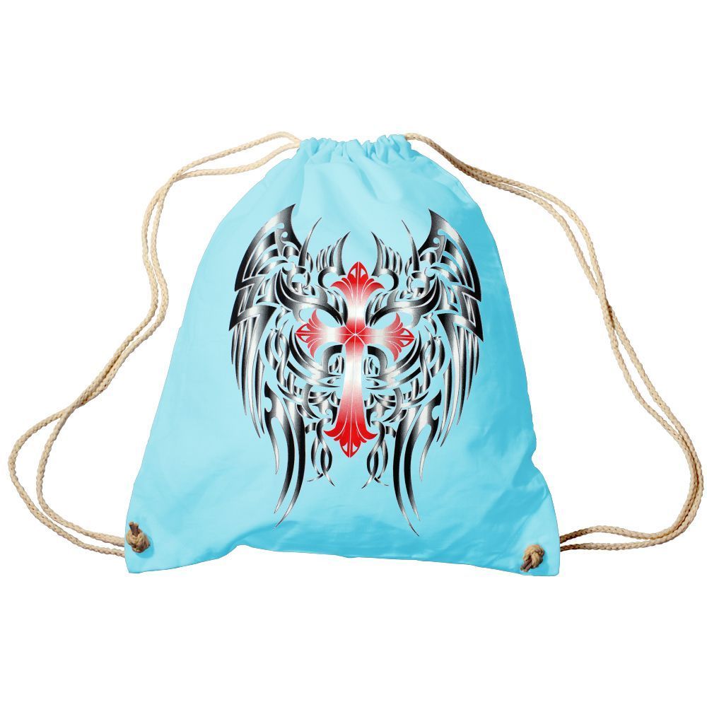 Trend-Bag Turnbeutel Sporttasche Rucksack mit Print- rotes Kreuz mit schwarzen Flüge