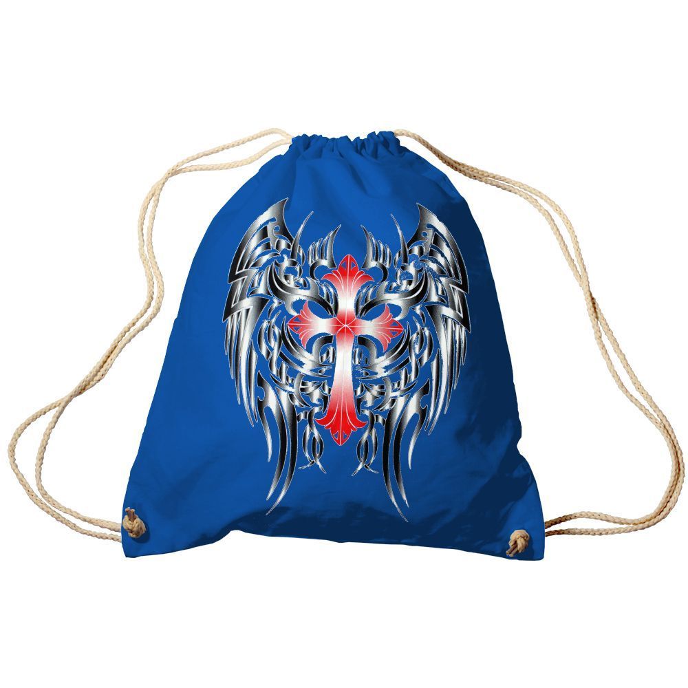 Trend-Bag Turnbeutel Sporttasche Rucksack mit Print- rotes Kreuz mit schwarzen Flüge