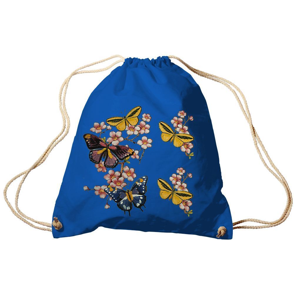 Trend-Bag Turnbeutel Sporttasche Rucksack mit Print -Schmetterlinge - TB65322 Royal