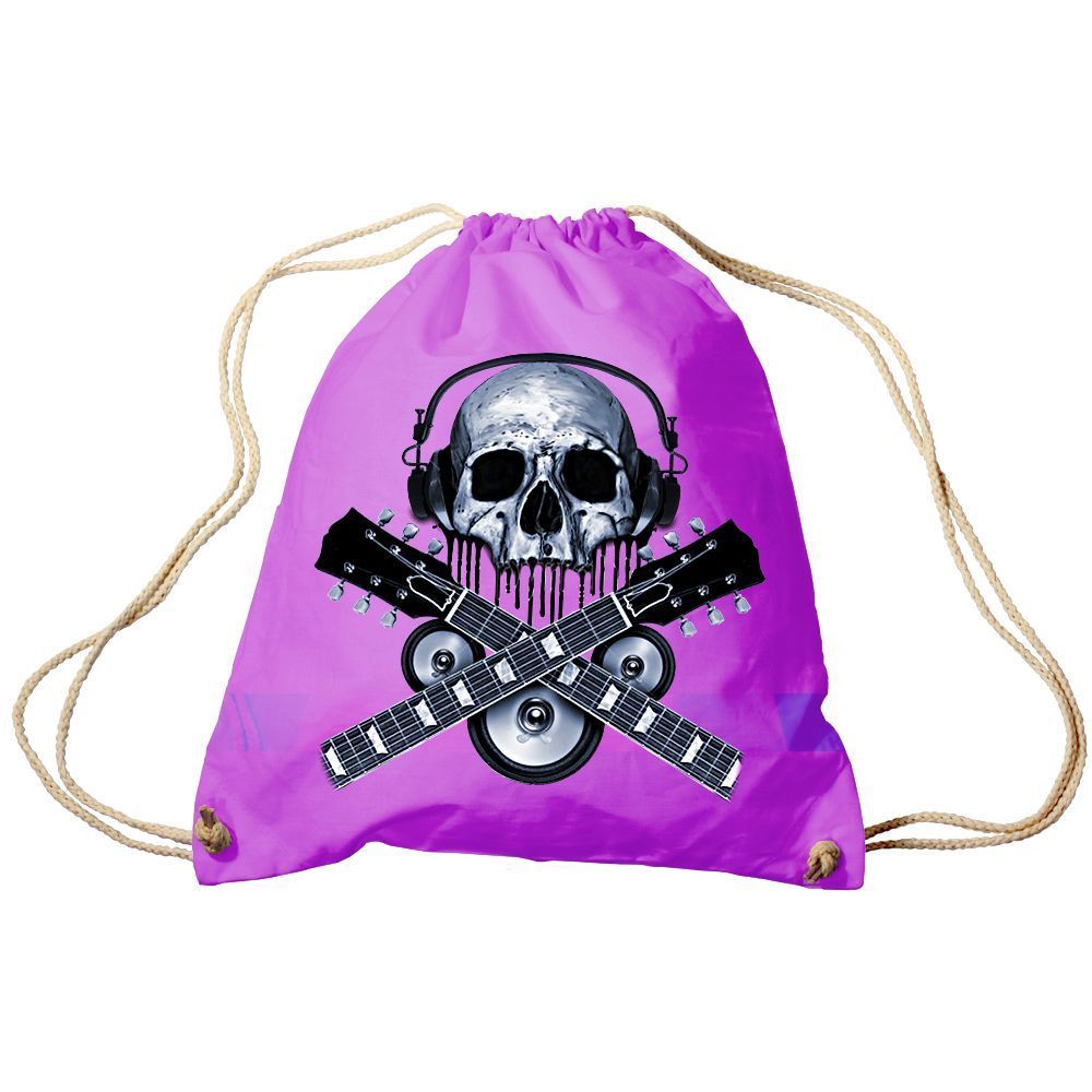 Trend-Bag Turnbeutel Sporttasche Rucksack mit Print - Skull Guitar - TB65308 Fuchsia