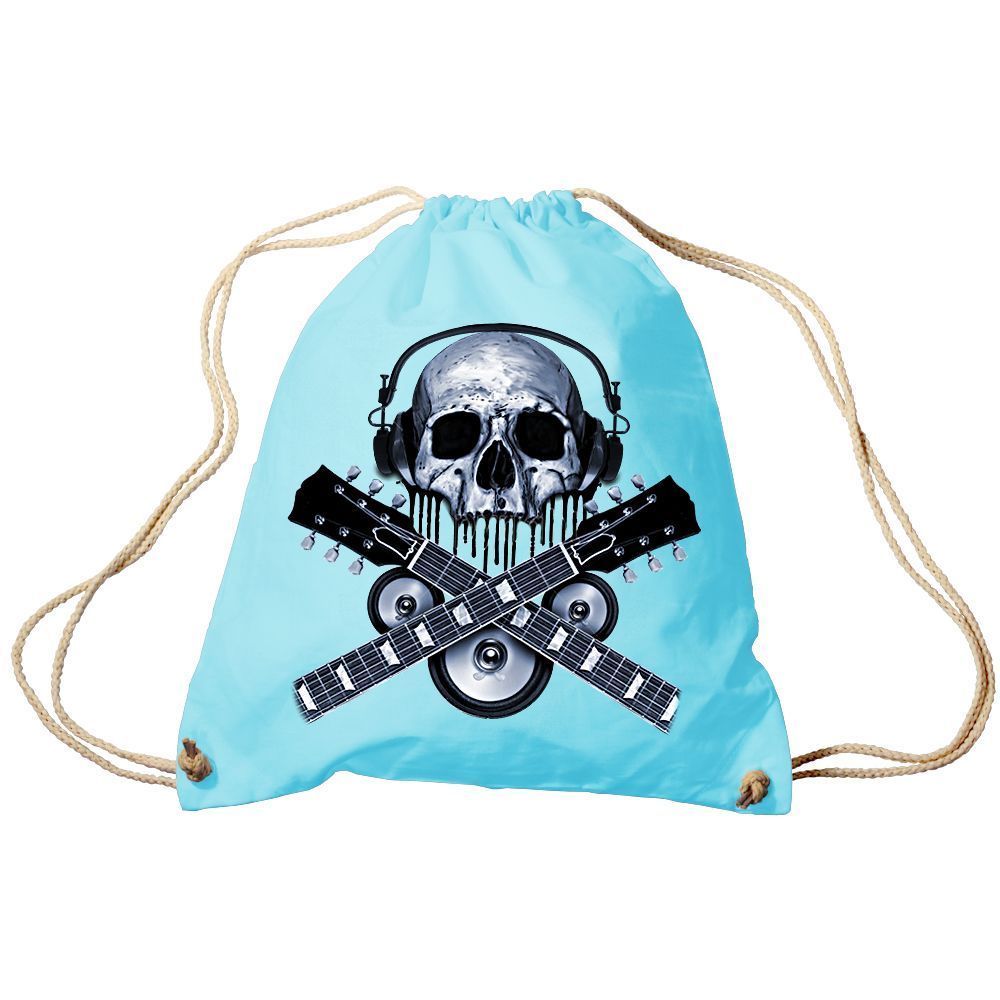 Trend-Bag Turnbeutel Sporttasche Rucksack mit Print - Skull Guitar - TB65308 hellblau