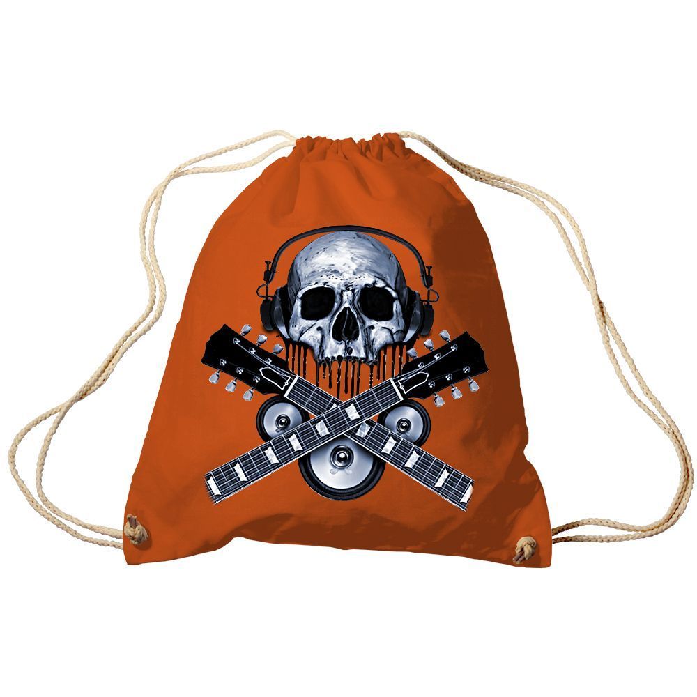 Trend-Bag Turnbeutel Sporttasche Rucksack mit Print - Skull Guitar - TB65308 Orange