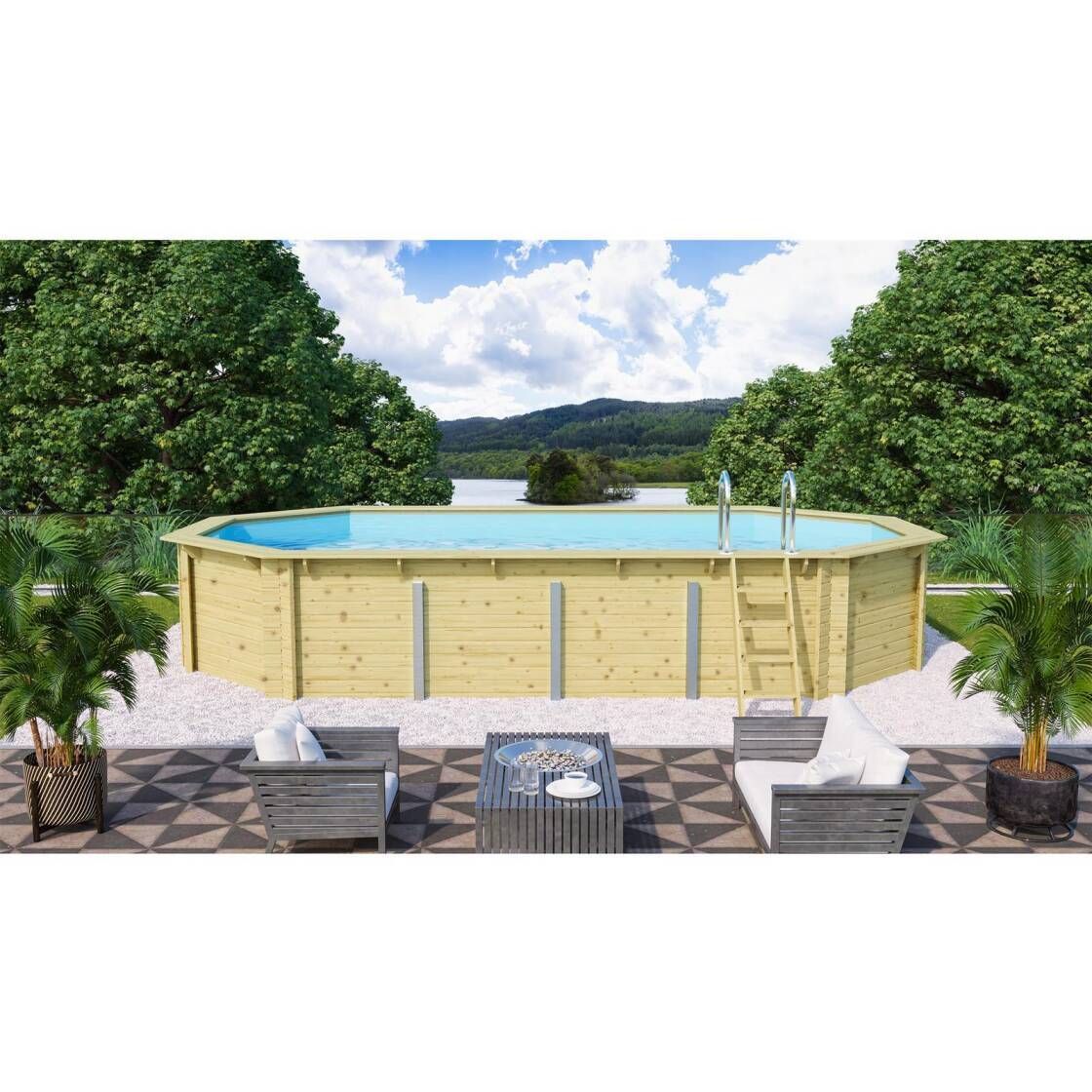 Trend Holzpool SET Achteck | Blockbohlenecken | versch. Folienfarben | versch. Größen