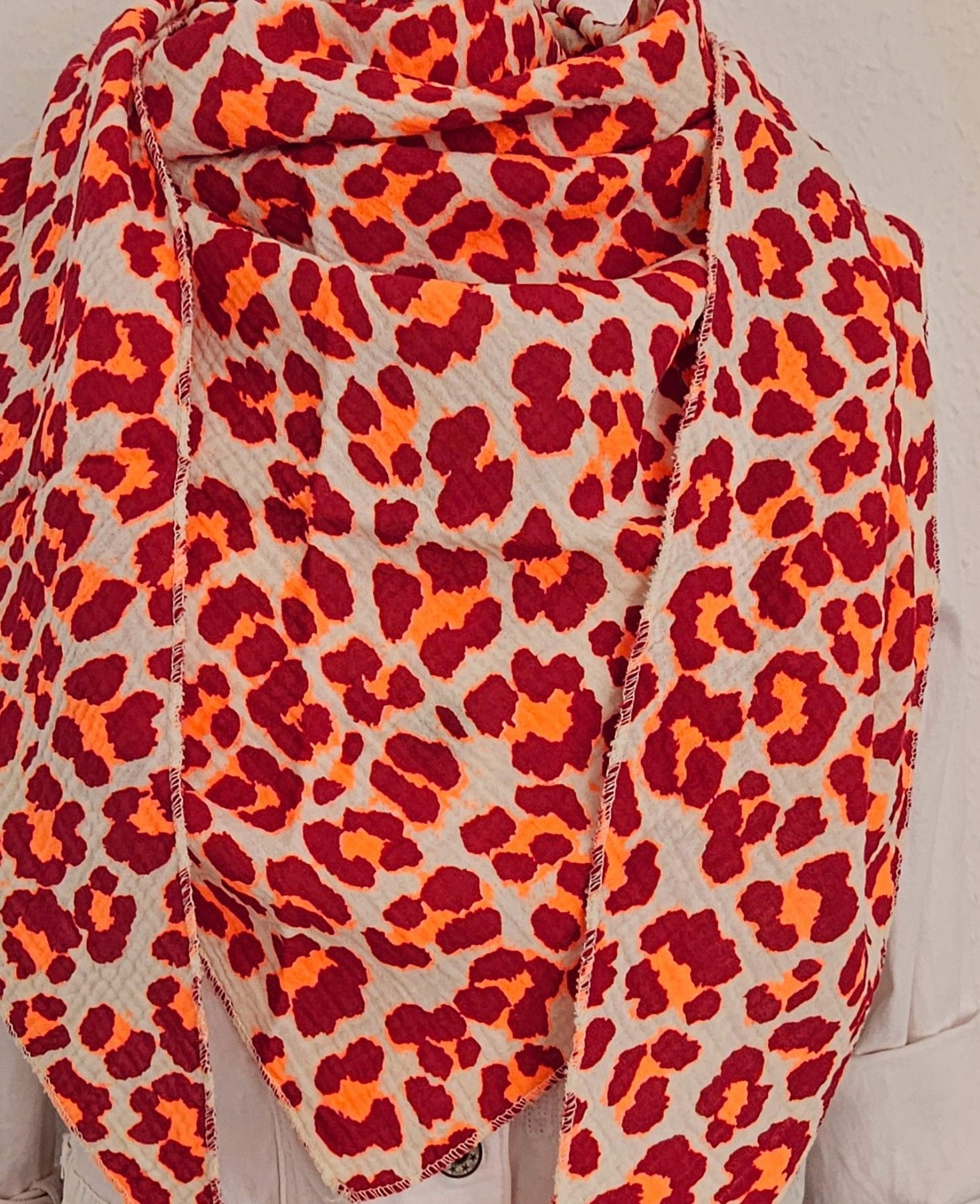 Trend leichtes Musselin Dreieckstuch Baumwolle Schal Beige mit buntem Animalprint