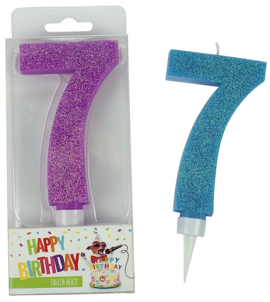 Trendhaus Trendhaus 942050 Geburtstagskerze Glitter Zahl 7 - sortiert