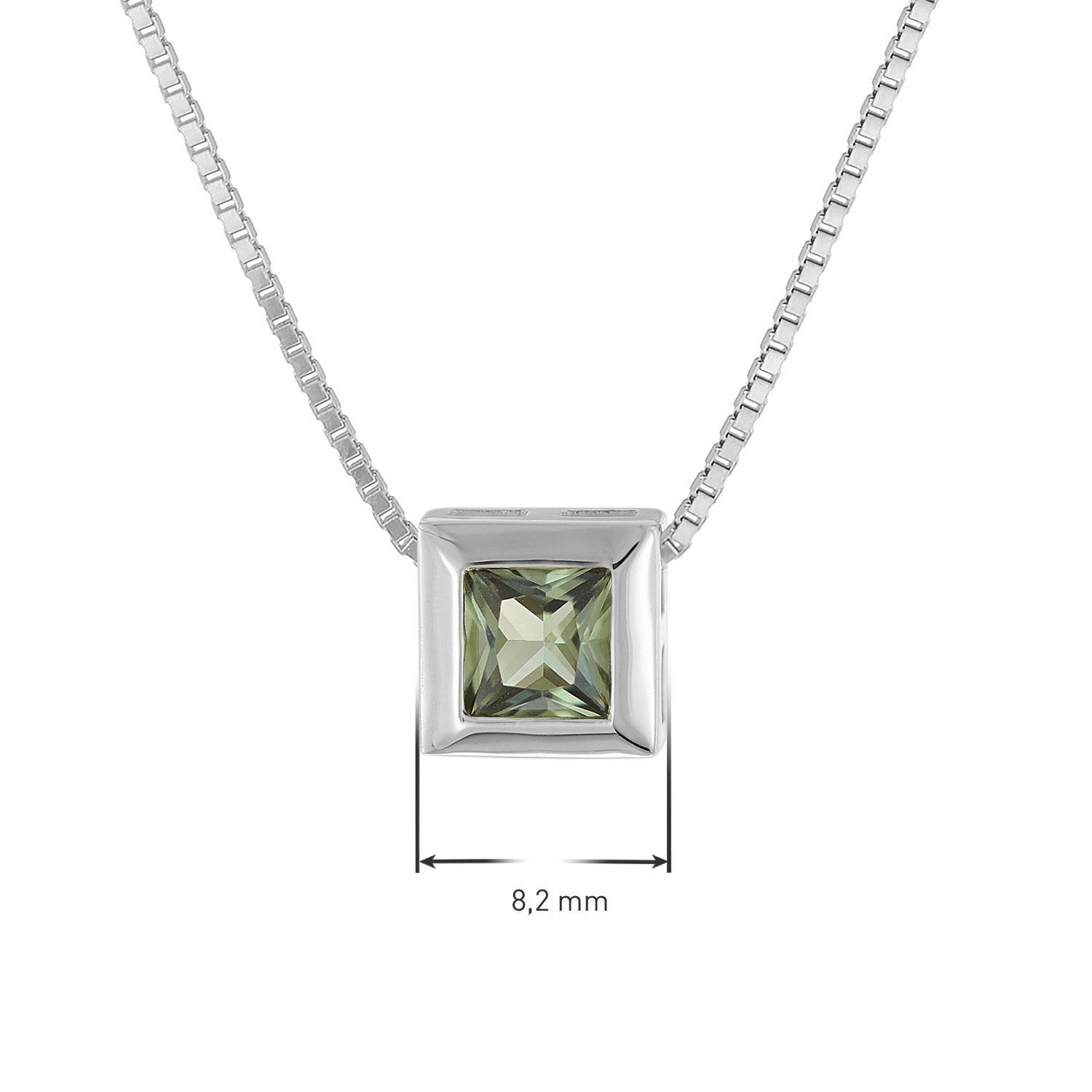modischer Halschmuck aus poliertem 925 Sterlingsilber, anlaufgeschützt rhodiniert, quadratischer Anhänger mit einem facettierten synthetischen Turmalin, Größe 8,2 x 8,2 x 4,6 mm, kann auch mit der Spitze nach oben getragen werden, Venezianer Halskette, in Stärke 0,9 mm, Federring-Verschluss, hochwertige Verarbeitung, Lieferung inklusive einem Mikrofaser-Pflegetuch