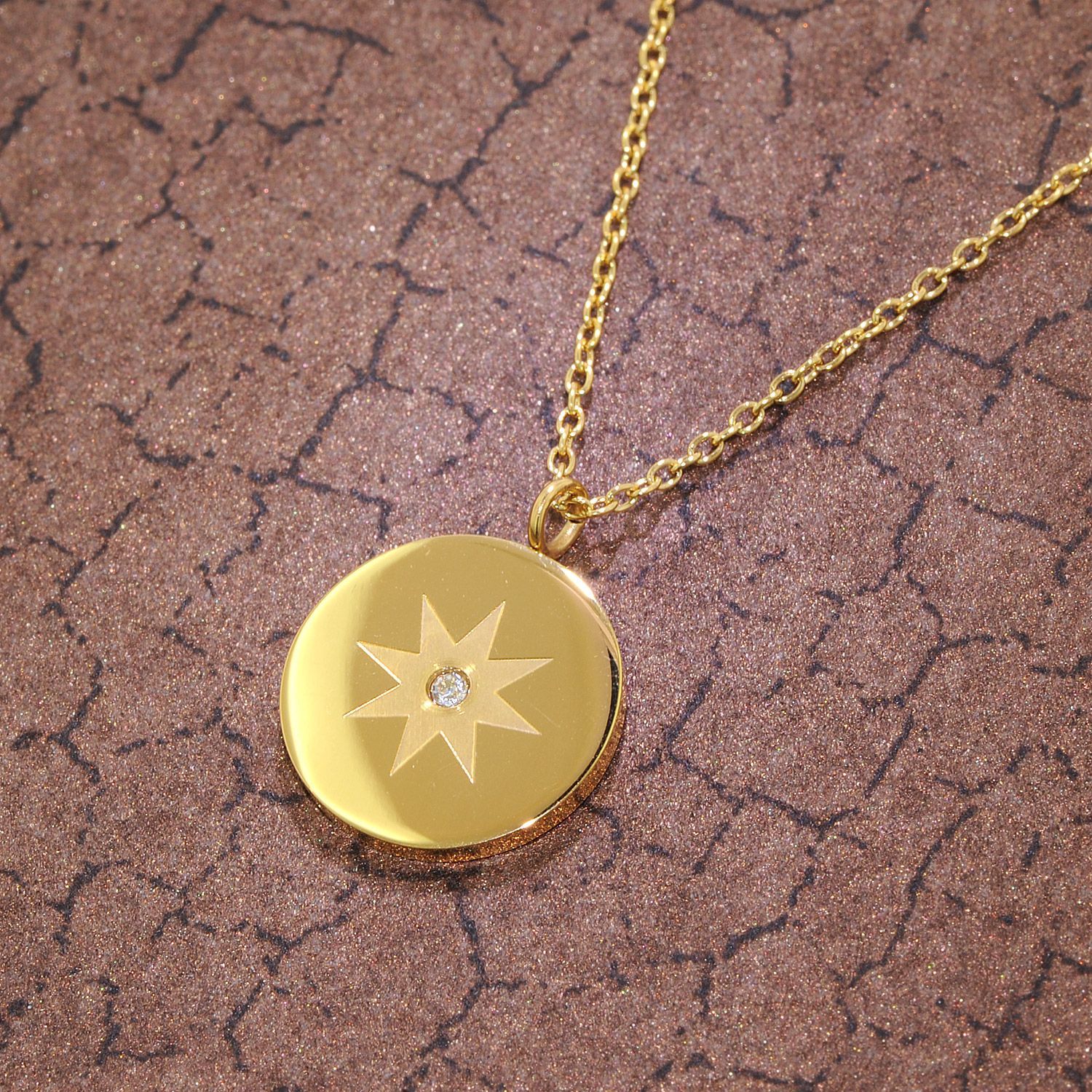 trendor Schmuck Damen-Kette mit Anhänger Gold auf Edelstahl Ankerkette 75883