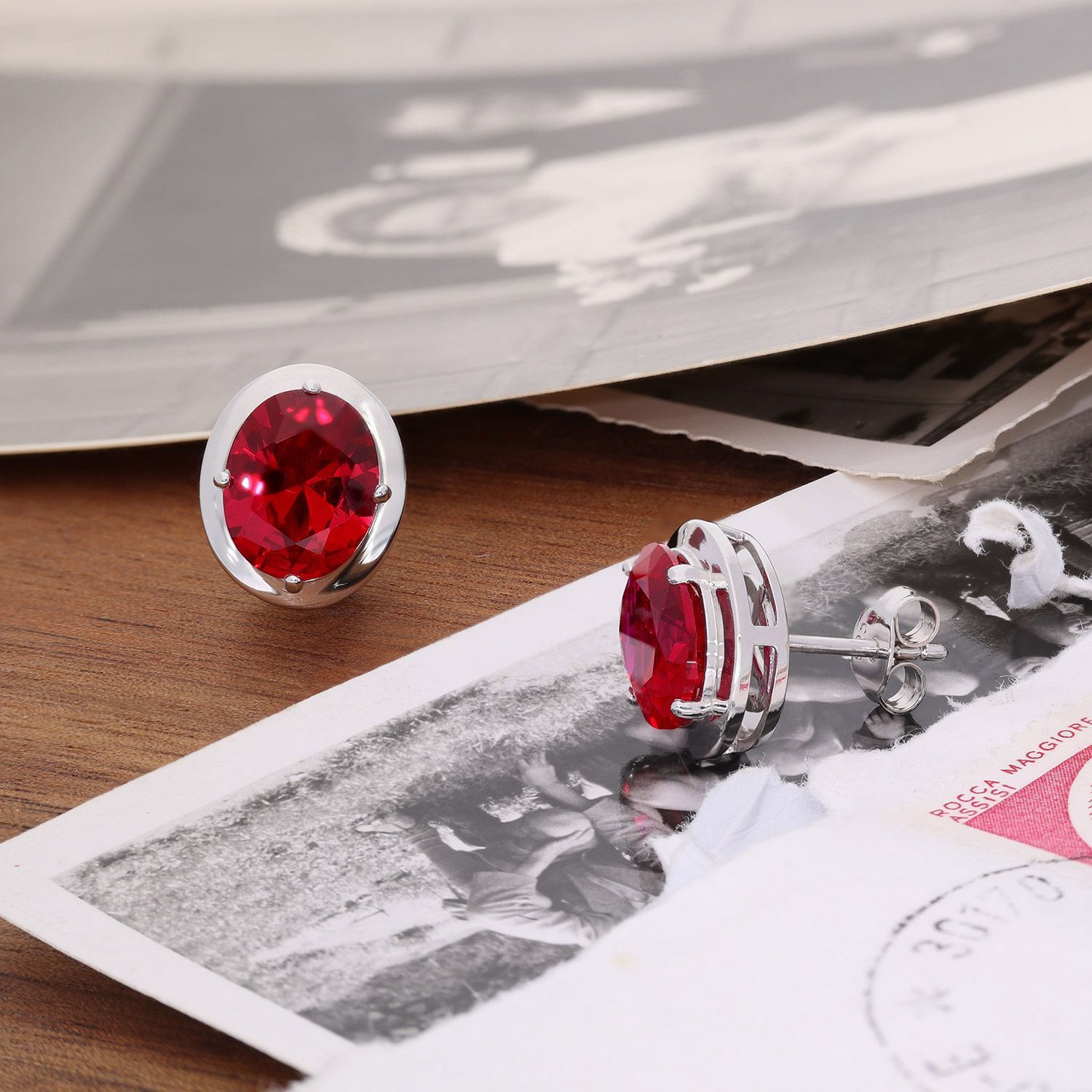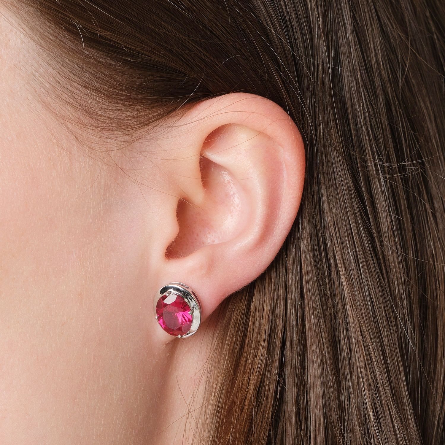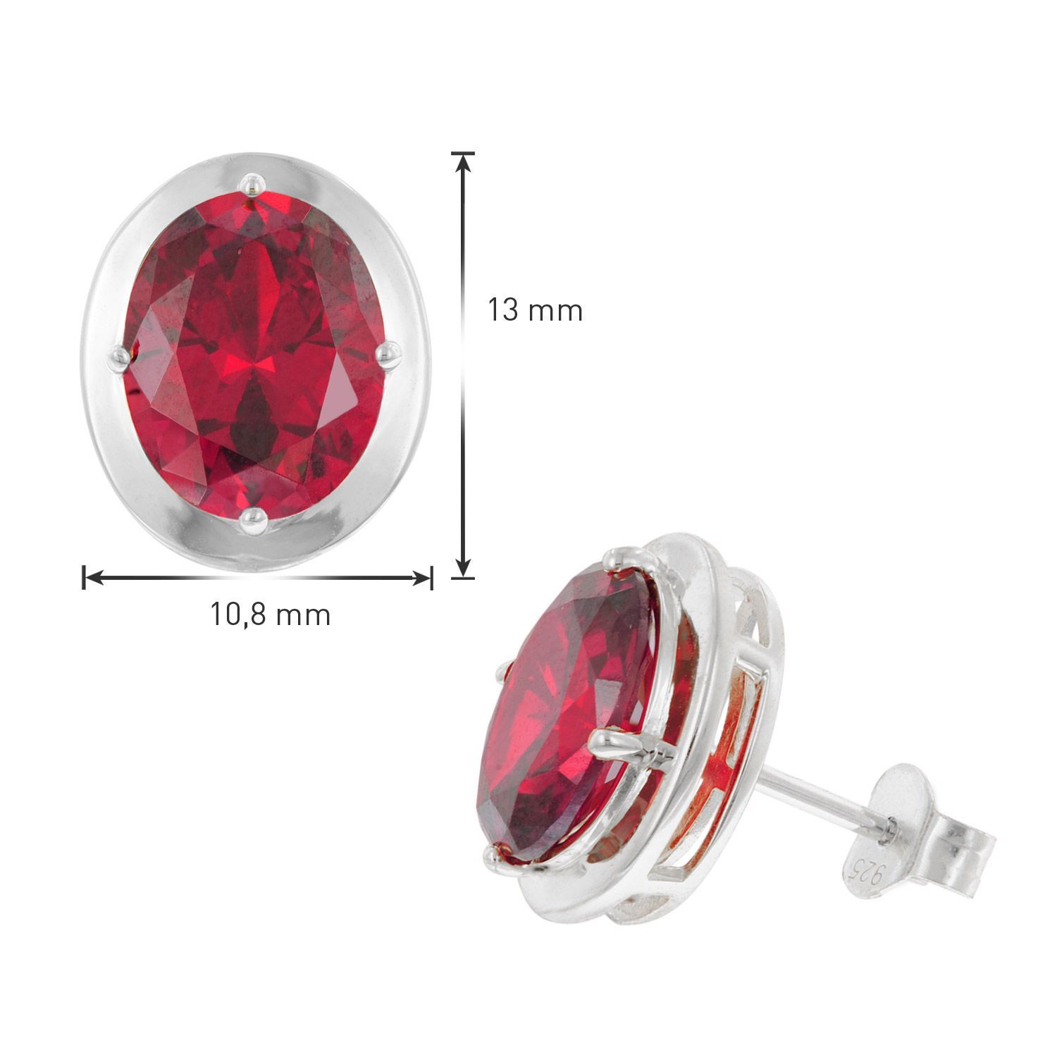 trendor Schmuck Damen-Ohrringe 925 Silber Zirkonia-Ohrstecker Rubinrot 21340-08