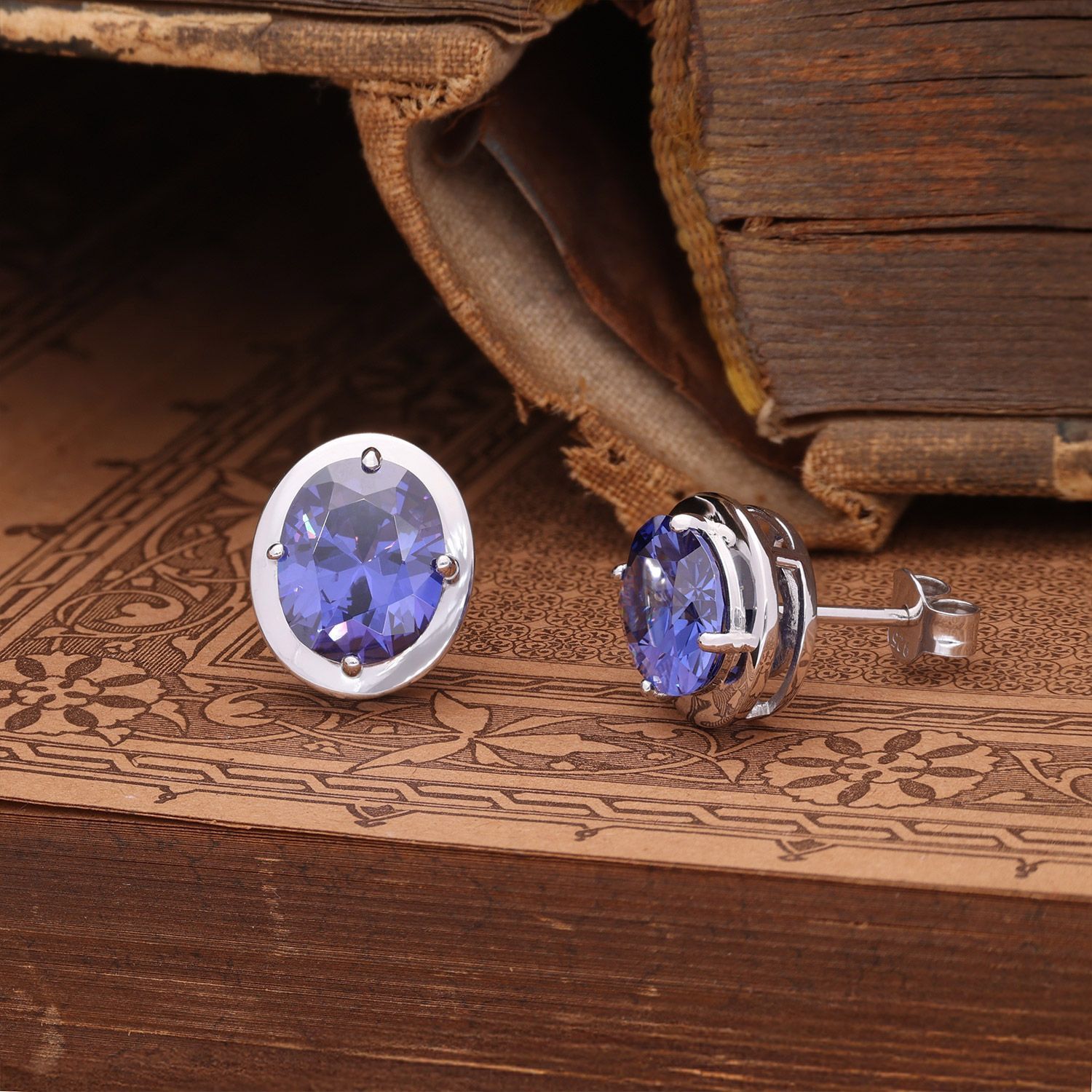 trendor Schmuck Damen-Ohrringe 925 Silber Zirkonia-Ohrstecker Tanzanitblau 21340-06