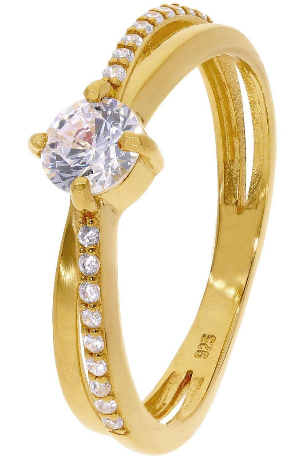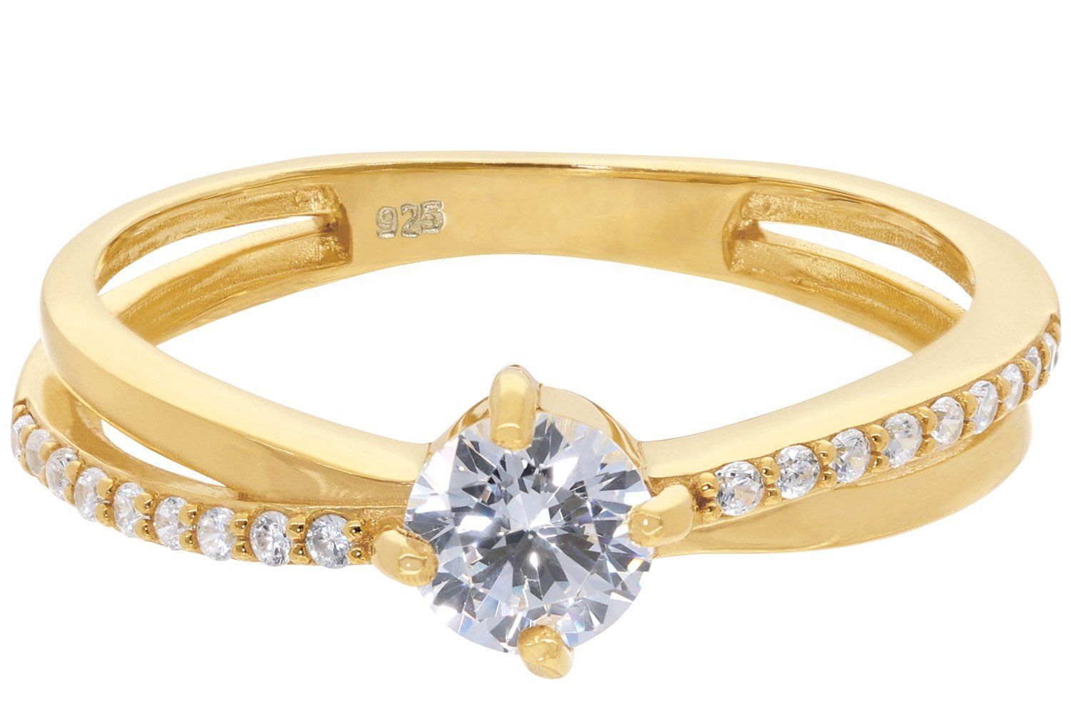 • trendor Schmuck Damenring 925 Silber Vergoldet Zirkoniaring 28520