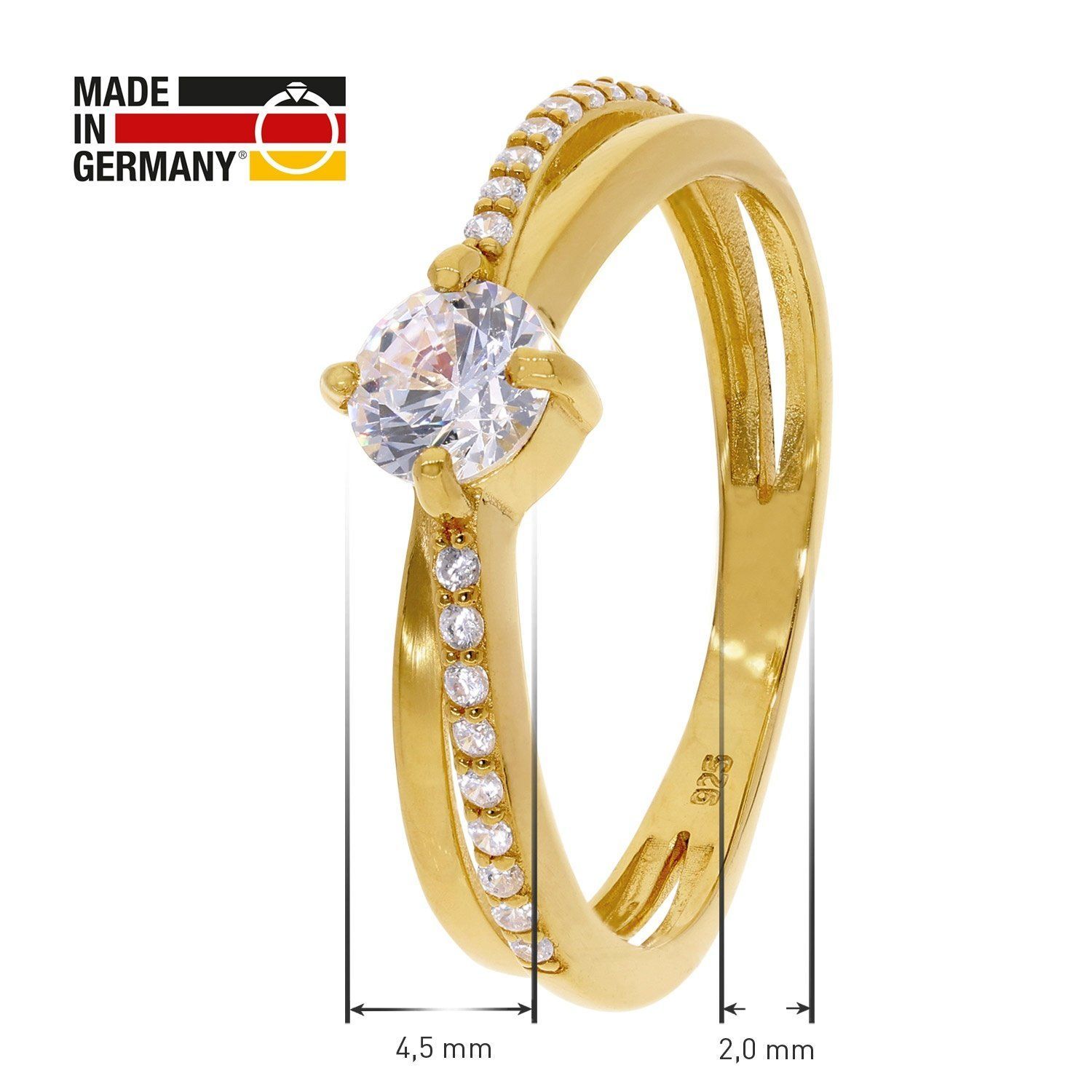 trendor Schmuck Damenring 925 Silber Goldplattiert mit Zirkonias 68715