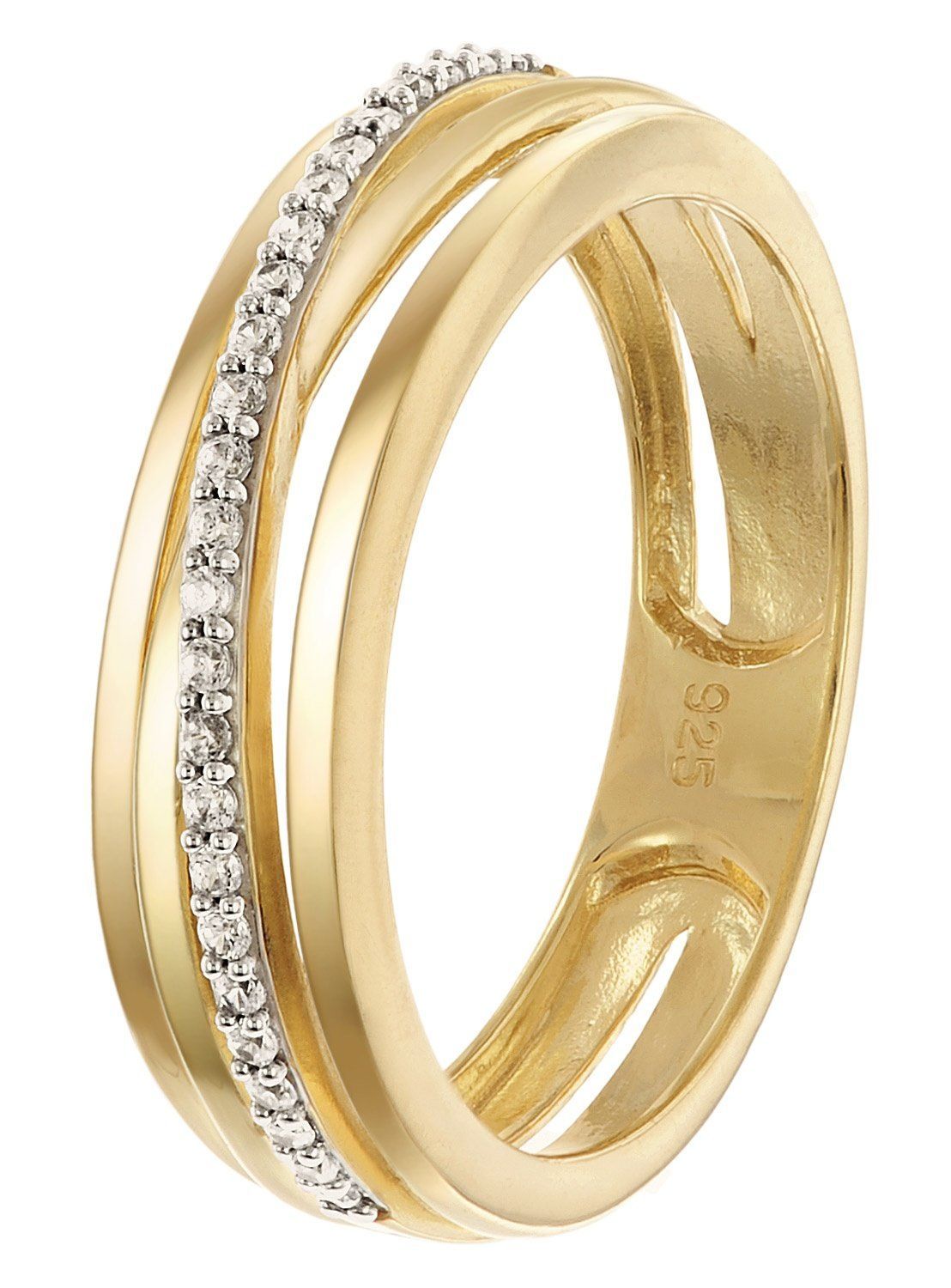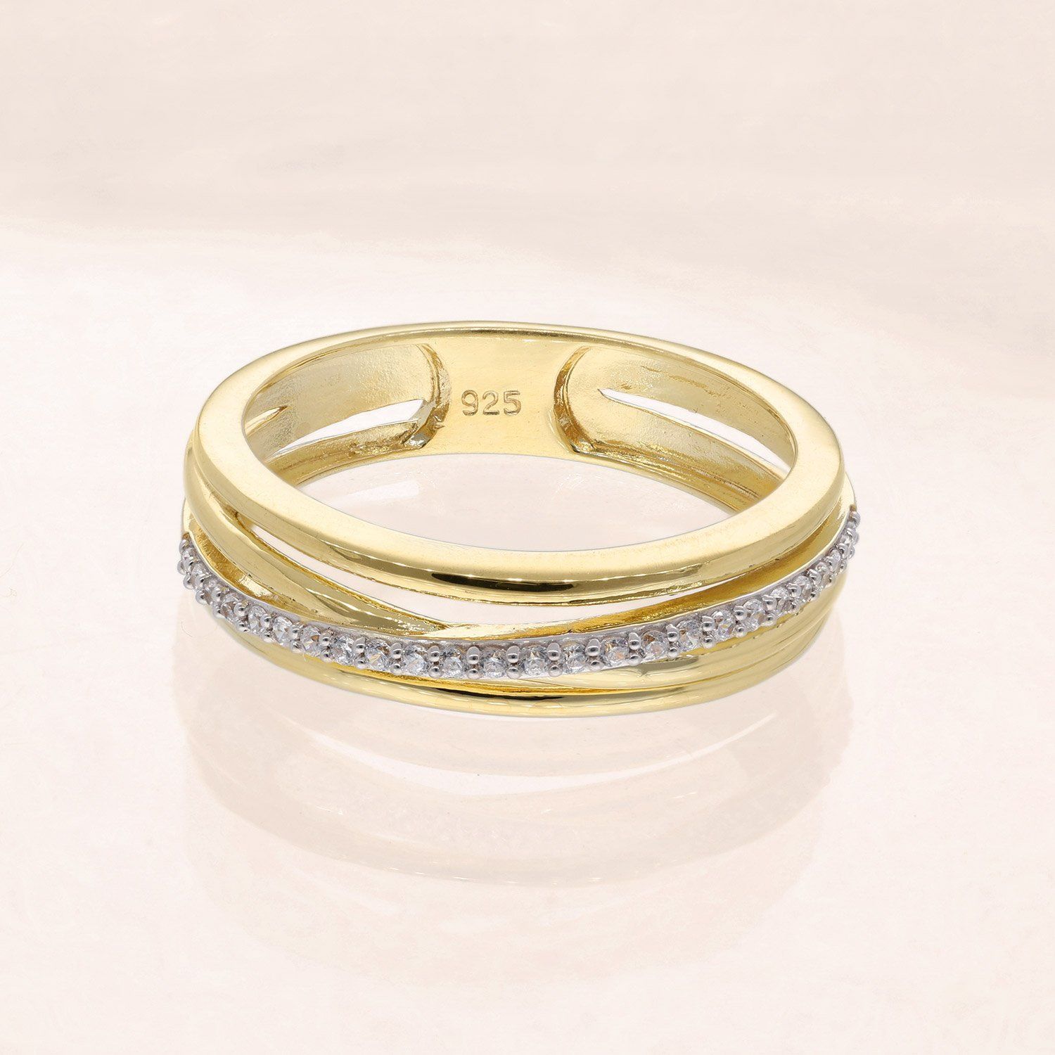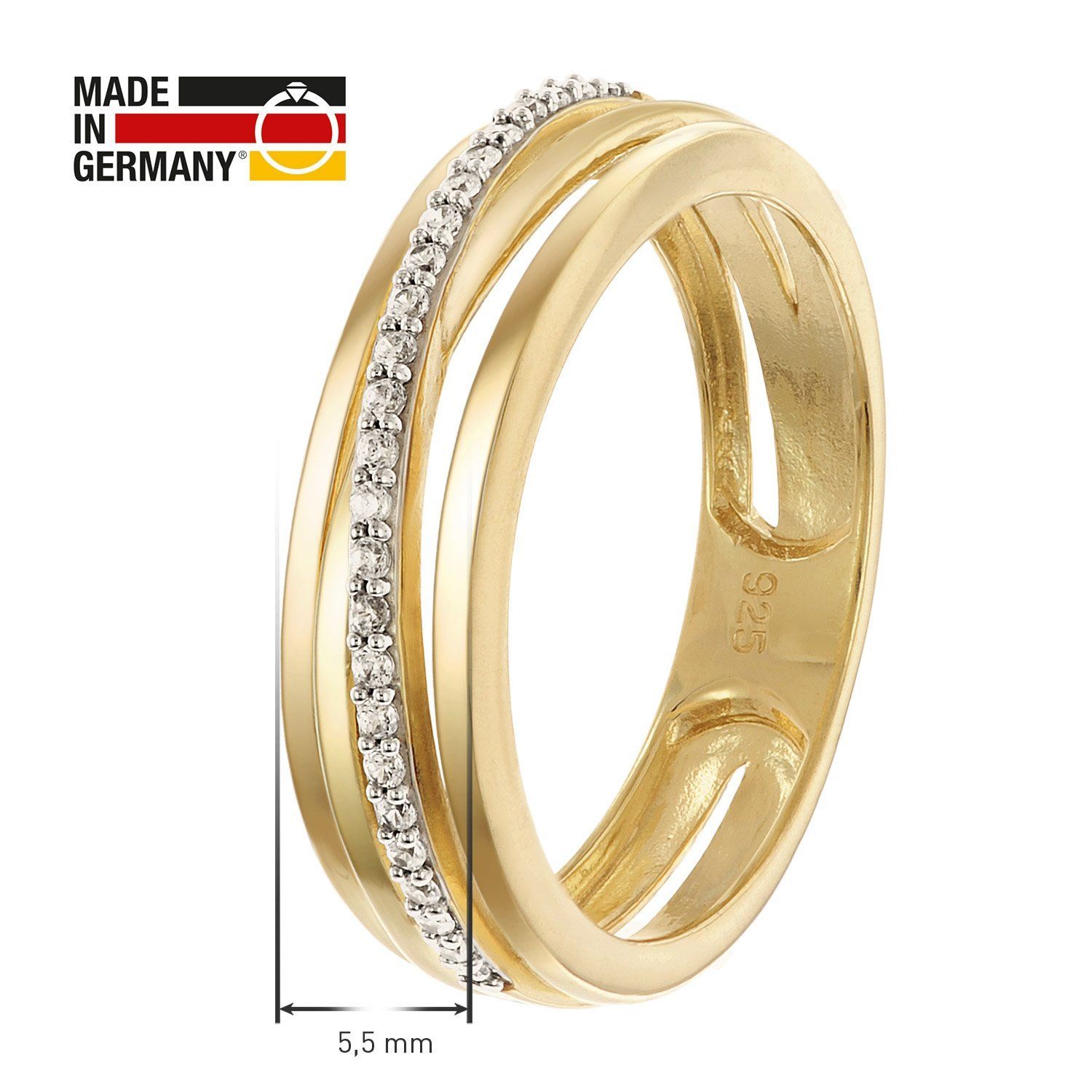 trendor Schmuck Damenring 925 Silber Vergoldet mit Zirkonias 28022