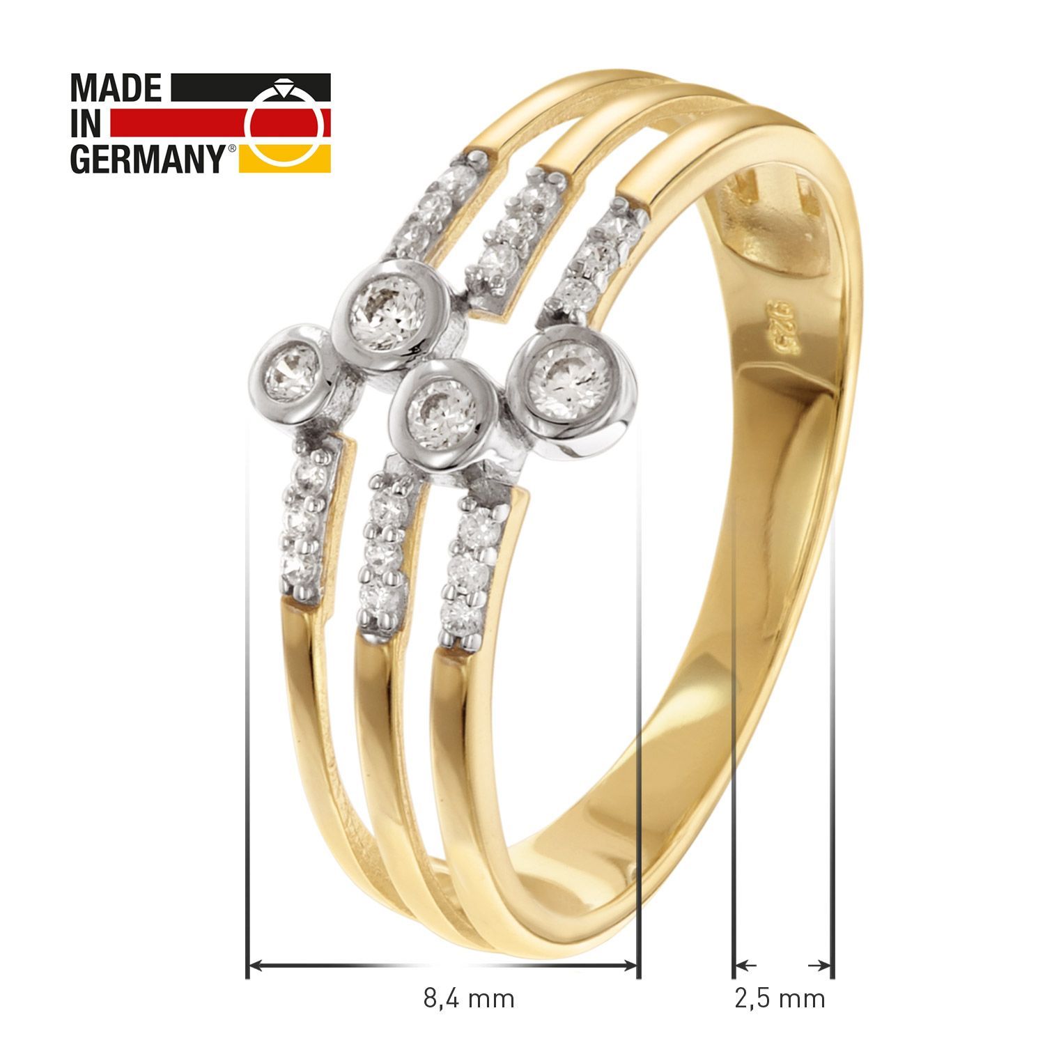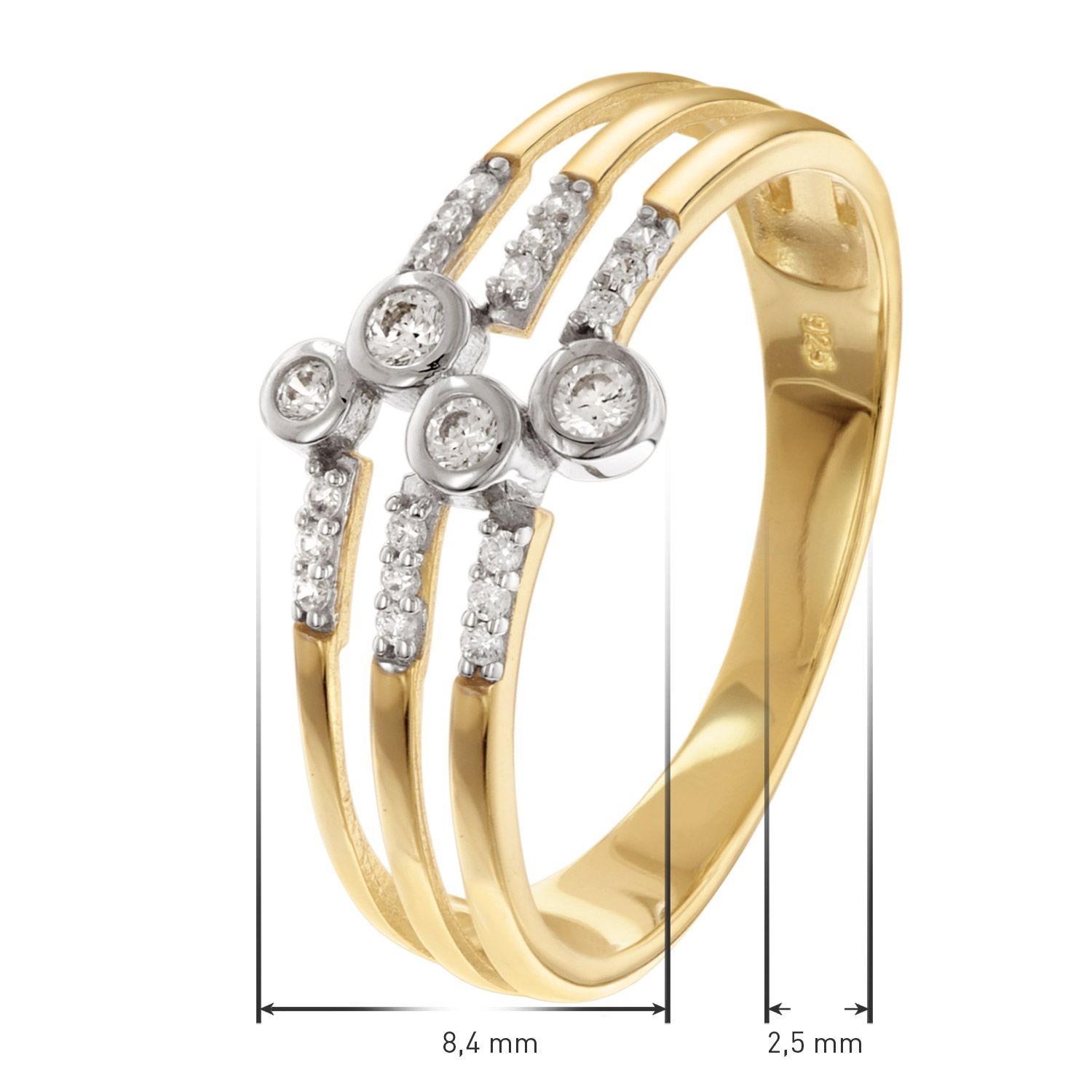 trendor Schmuck Damenring 925 Silber Vergoldet Mit Zirkonias 68996