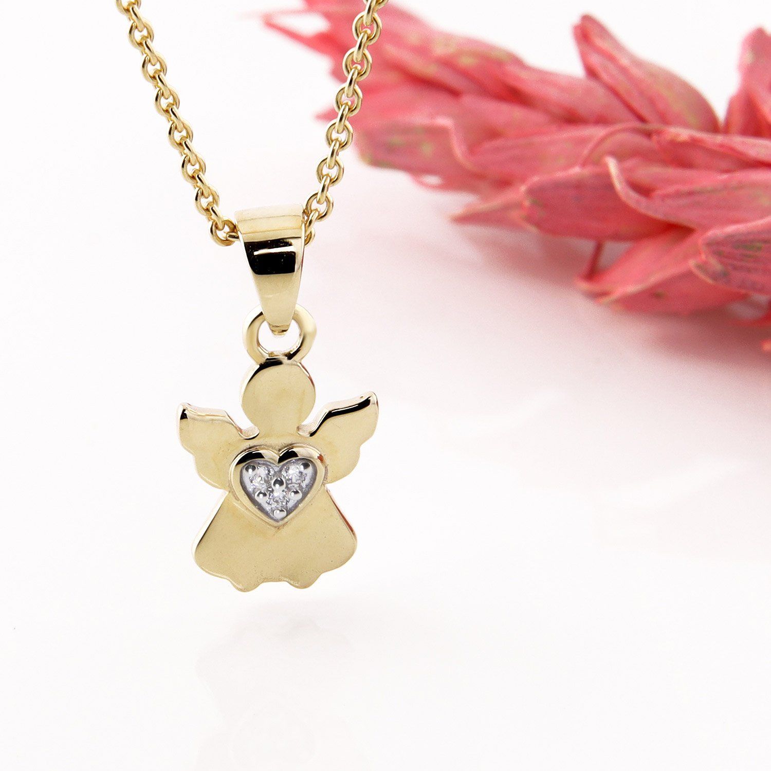 trendor Schmuck Engel-Anhänger Gold 333 mit Vergoldeter Silberkette für Kinder 28974