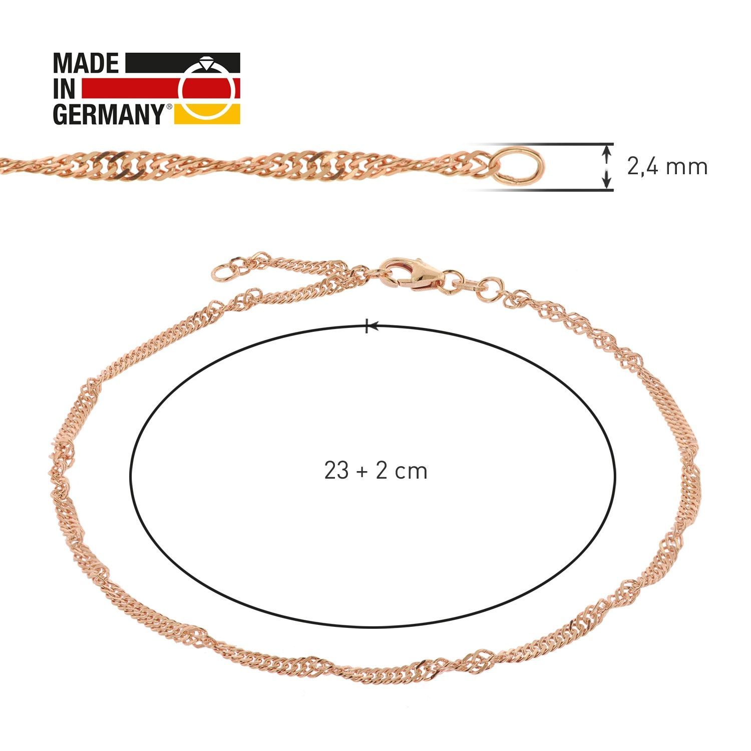 trendor Schmuck Fußkette 925 Silber Rosé Vergoldet Singapur-Muster Breite 2,4 mm 212