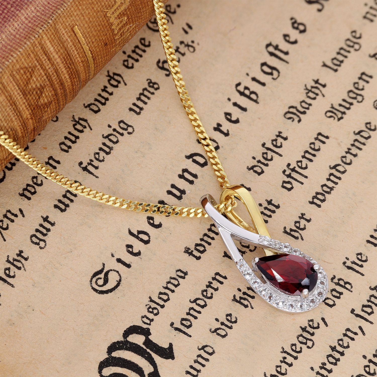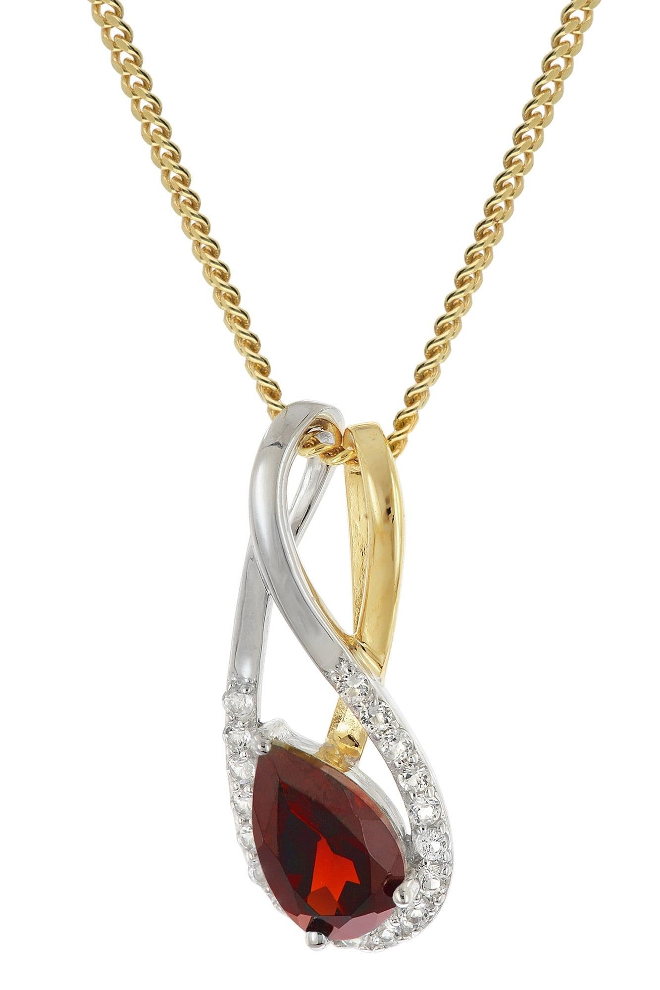 trendor Schmuck Gold-Anhänger 333/8K mit Granat/Topas an vergoldeter Silberkette 212