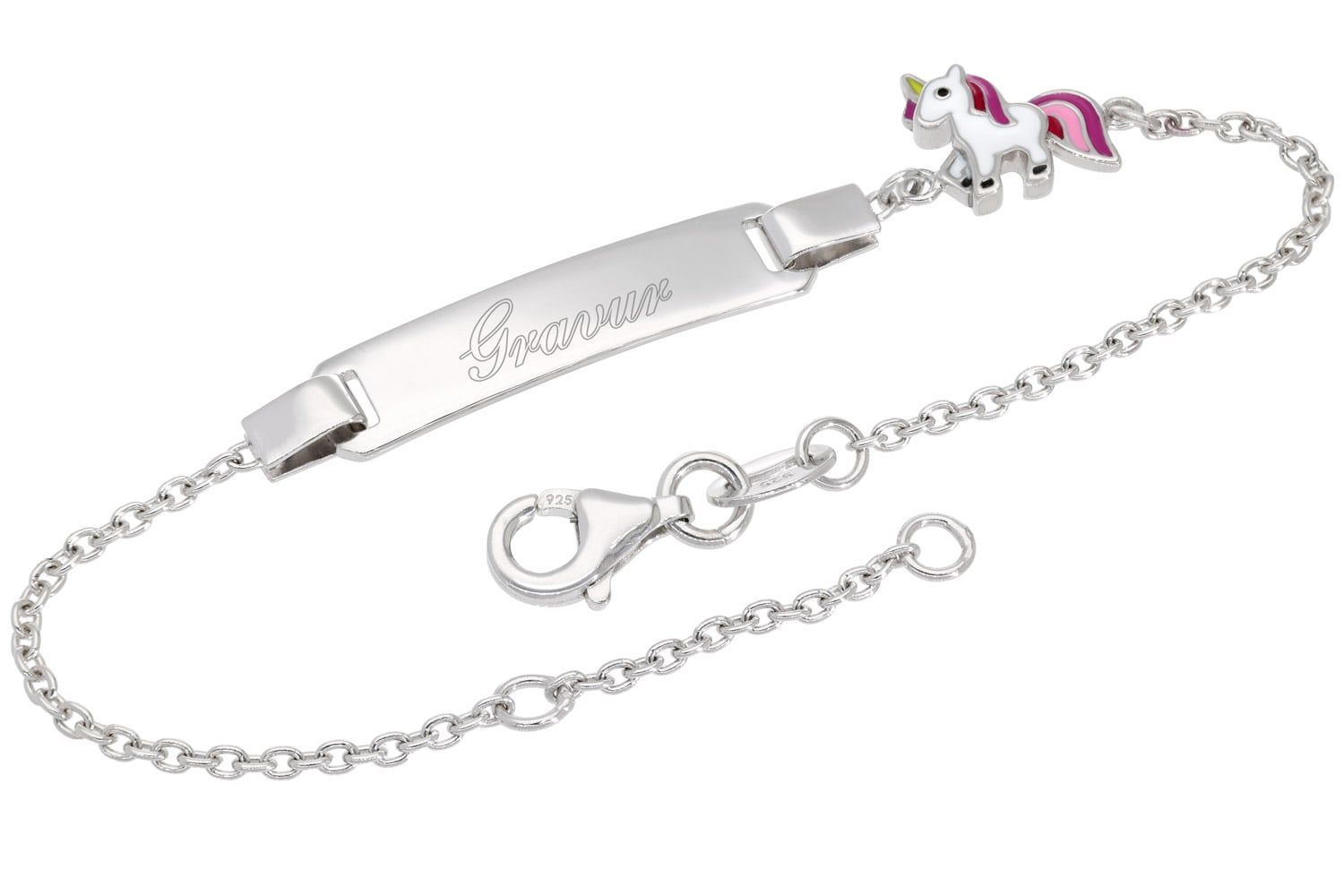 trendor Schmuck Gravur-Armband für Kinder Einhorn 925 Silber Namensband 16/14 cm 216