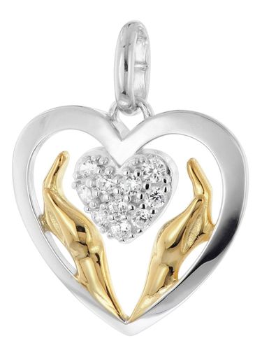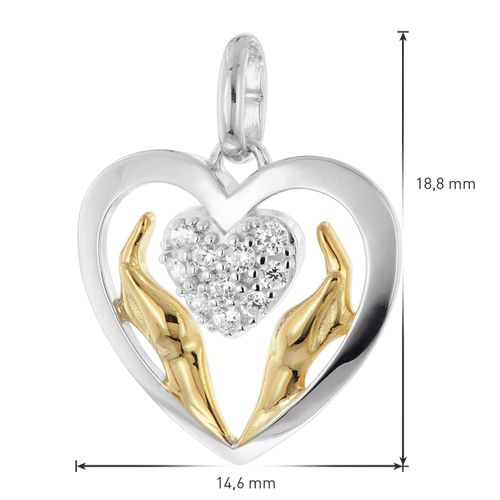 herzförmiger Silber-Anhänger mit Dankbarkeit-Symbol, glitzerndes Herzchen mit Zirkonias in vergoldeten Händen, Größe 18,8 x 14,7 mm, stabile Flachpanzerkette aus vergoldetem Sterlingsilber 925, variable Länge 45 cm, mit Zwischenösen bei 42 und 40 cm, Breite 1,4 mm, bequem bedienbarer Karabiner-Verschluss, Gewicht 4,0 g, Lieferung inklusive Mikrofaser-Pflegetuch