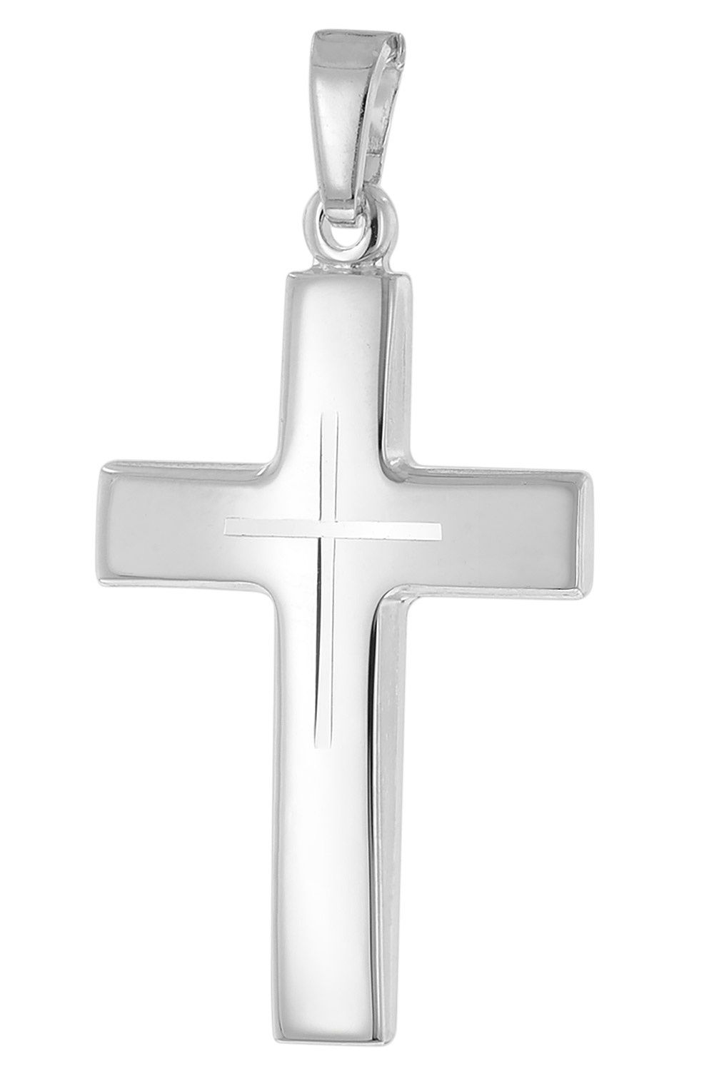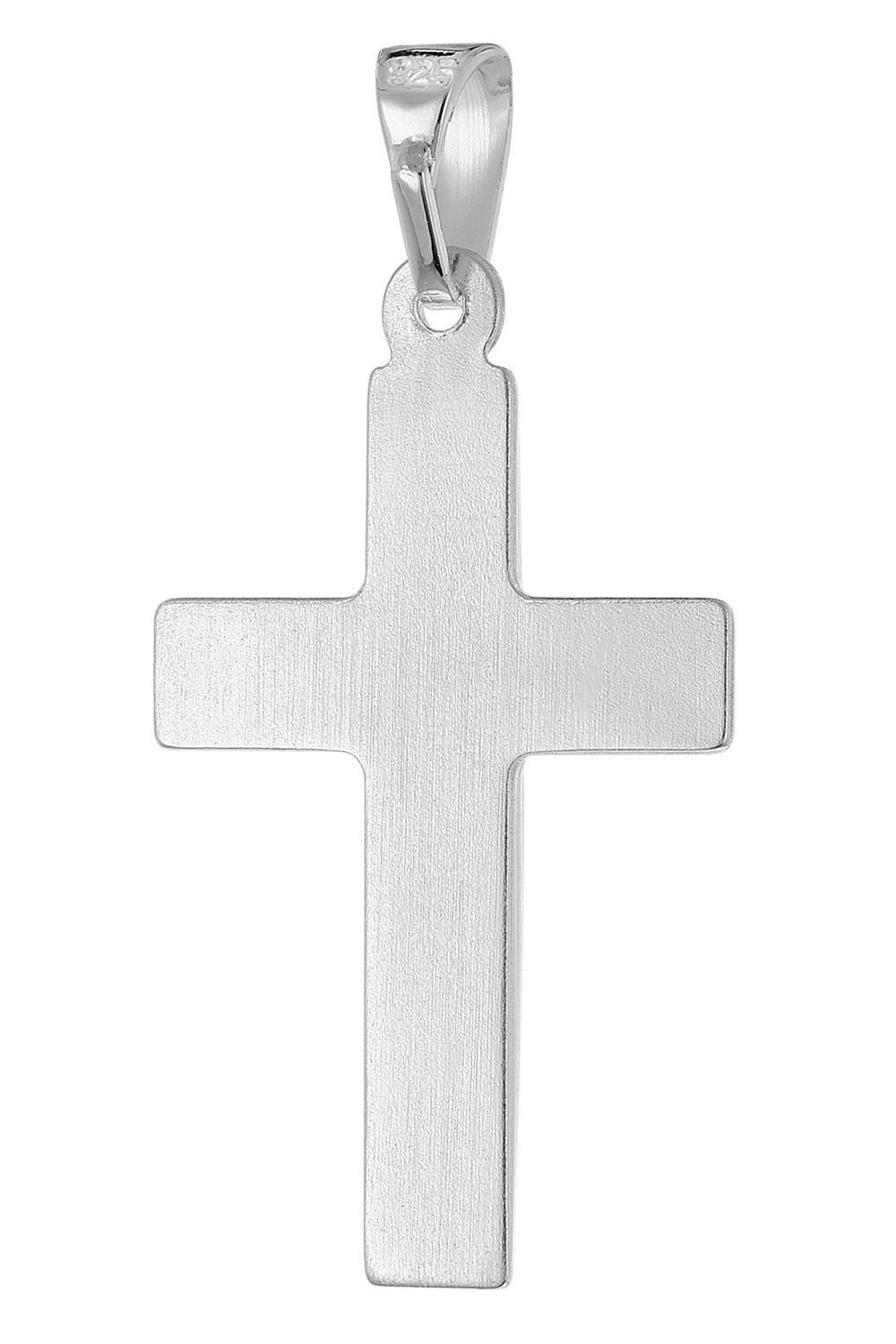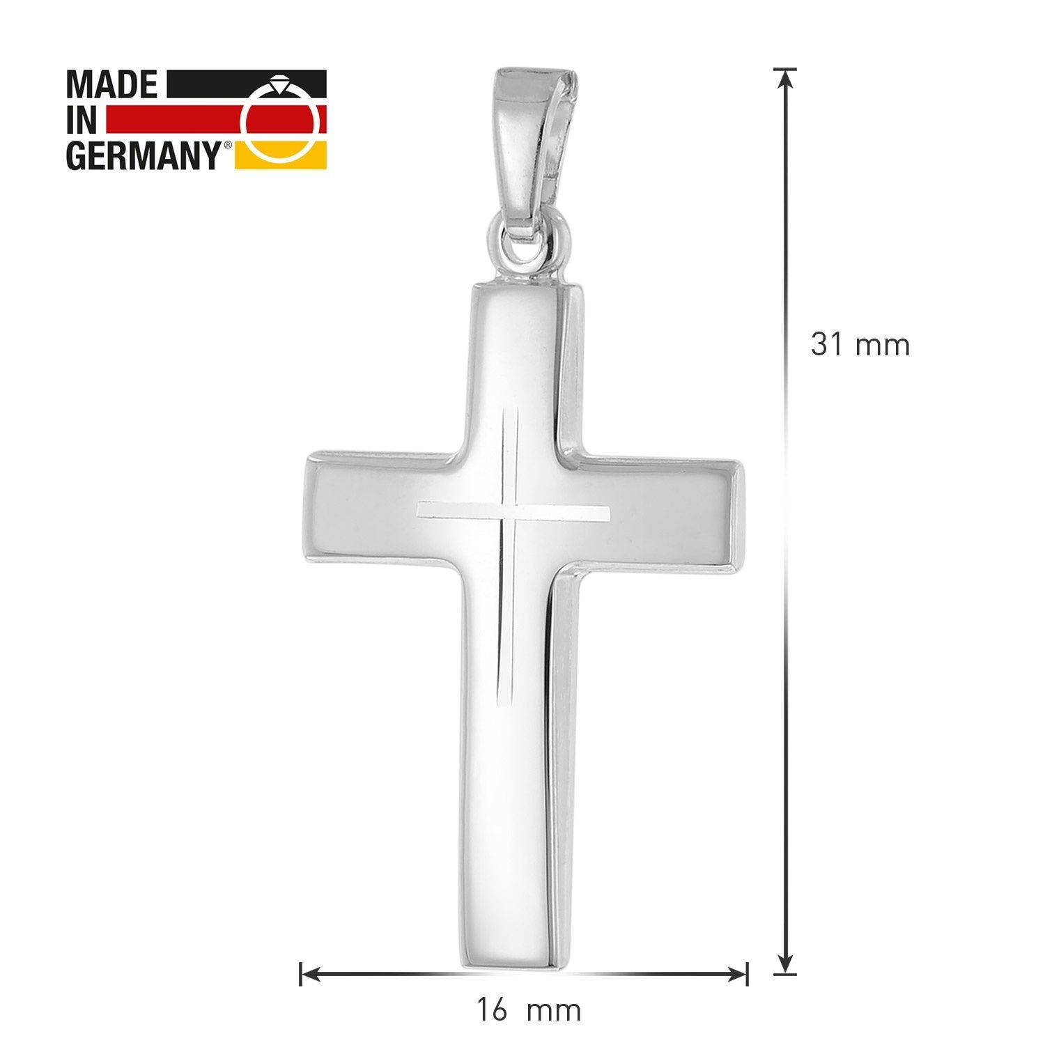 Halskette mit Kreuz-Anhänger für Männer, rhodiniertes Sterling-Silber 925, die Rhodium Auflage schützt dauerhaft vor Anlaufen und bringt strahlenden Glanz, massiver Kreuz-Anhänger mit Diamantschnitt, Größe (ohne Schlaufe) 24 x 16 x 1,6 mm, mit Schlaufe 31 mm lang, stabile Flachpanzer-Kette mit diamantierten Kanten, Breite 1,2 mm, Federring-Verschluss, hochwertige Verarbeitung, Made in Germany, Lieferung inklusive Mikrofaser-Pflegetuch