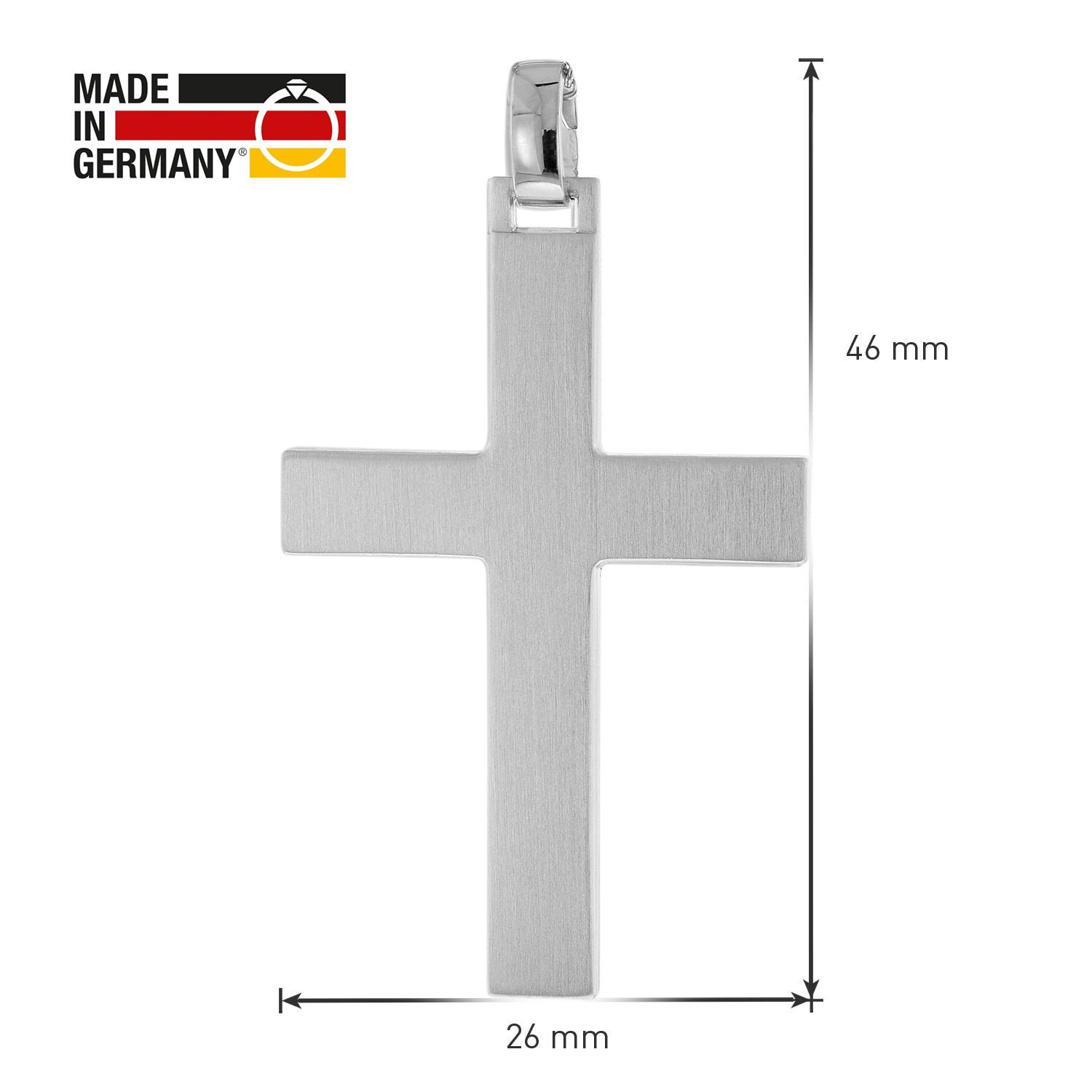 Kreuz-Anhänger für Männer, massives Sterlingsilber 925, anlaufgeschützt, rhodiniert, Seidenmatt-Finish, polierte Schlaufe, mattierte Rückseite, Größe (ohne Schlaufe) 41 x 26 x 2 mm, Rundanker-Kette aus Sterlingsilber 925, Stärke 1,5 mm, mit praktischem Federring-Verschluss, Made in Germany, inklusive einem Mikrofaser-Pflegetuch