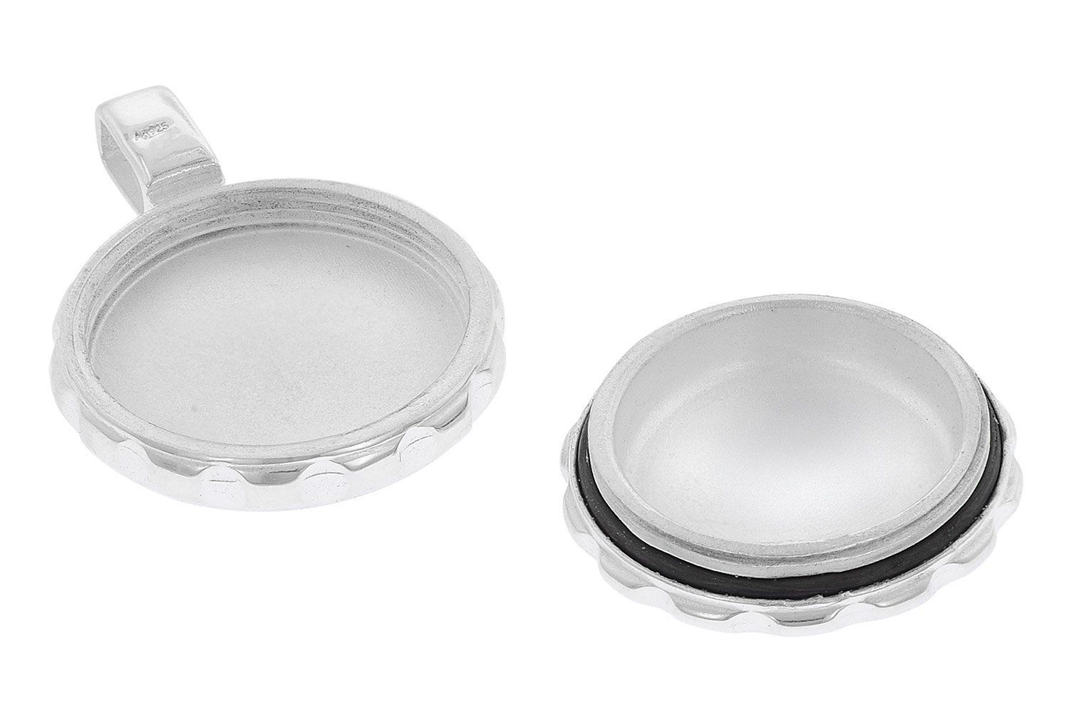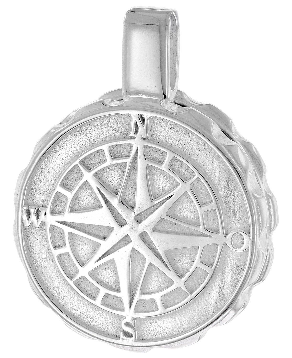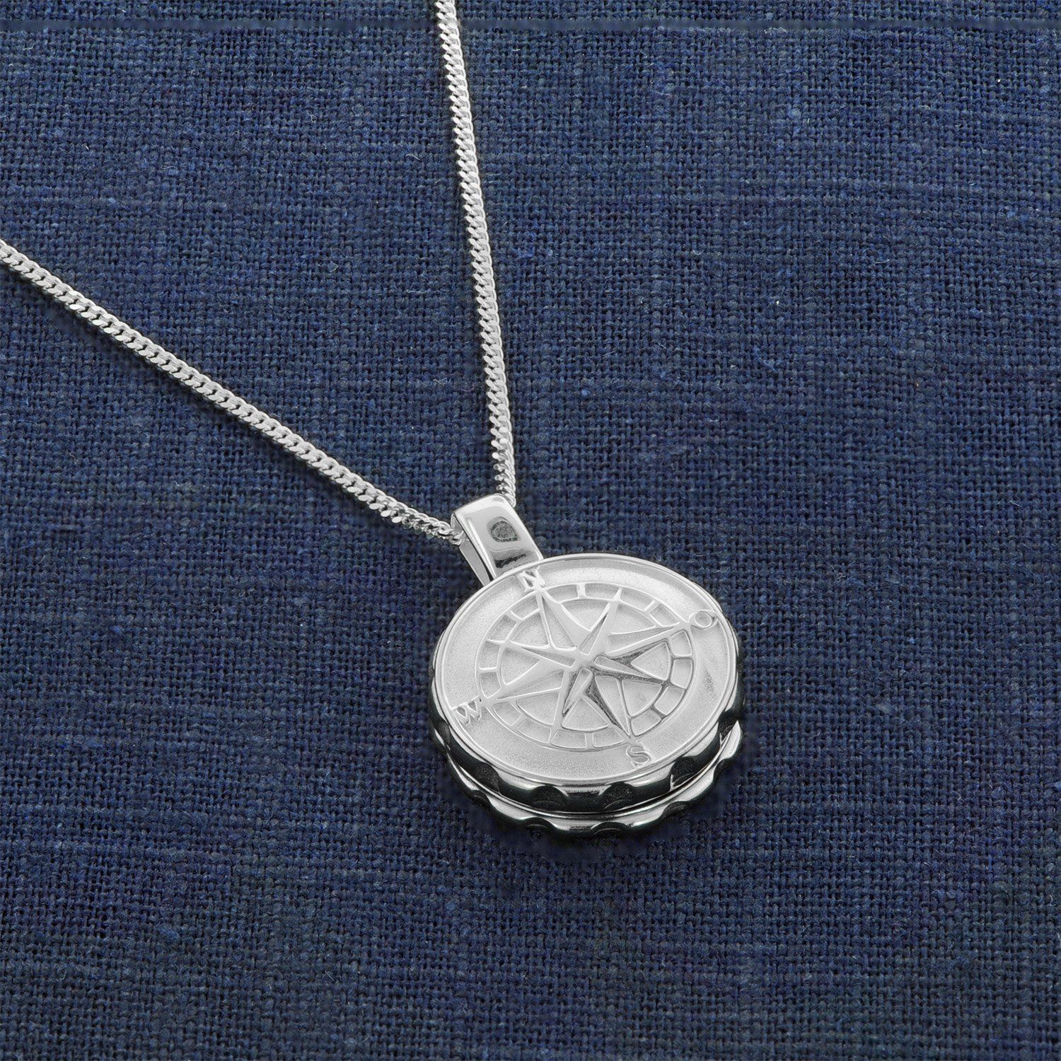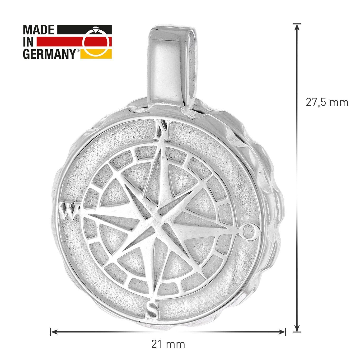 Halskette mit Medaillon-Anhänger für Männer, Sterlingsilber 925, matt/poliert, Made in Germany, Medaillon mit Kompass-Dekor, verschraubter Boden, zur Aufbewahrung von Erinnerungen oder kleinen Geheimnissen, Durchmesser 21 mm, Dicke 6,7 mm, Länge (mit Schlaufe 27,5 mm, robuste polierte Flachpanzerkette, Breite 1,6 mm, hochwertig verarbeitet, praktischer Federring-Verschluss, Lieferung mit einem Mikrofaser-Pflegetuch