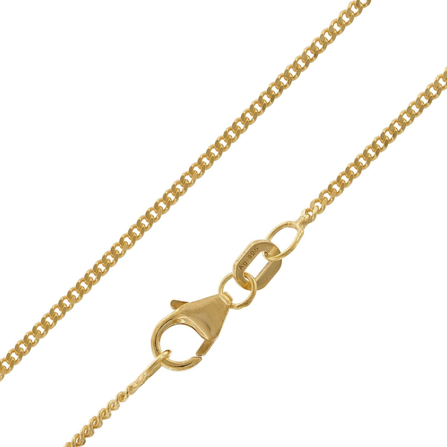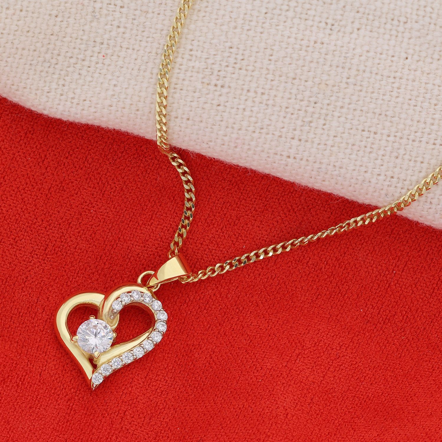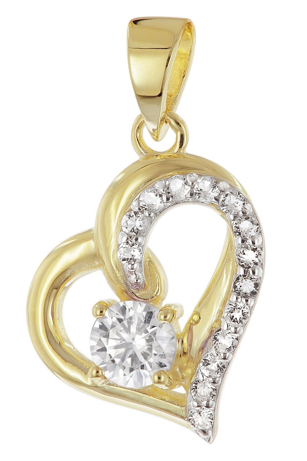 attraktiver Schmuckanhänger im Herzformat, 8 Karat Gold, gestempelt 333, besetzt mit hell strahlenden klaren Zirkonia, Größe (mit Schlaufe) 19,5 x 12,5 mm, stabile Flachpanzerkette aus vergoldetem Sterlingsilber 925, variable Länge 45 cm, mit Zwischenösen bei 42 und 40 cm, Breite 1,4 mm, bequem bedienbarer Karabiner-Verschluss, Lieferung mit einem Mikrofaser-Pflegetuch