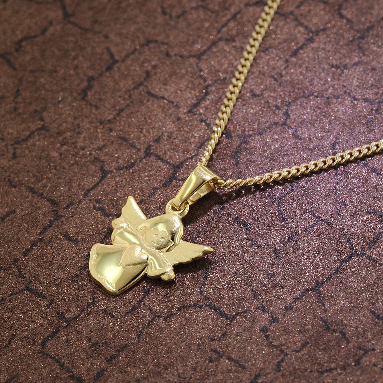 trendor Schmuck Kinder-Anhänger Engel 333 Gold mit goldplattierter Halskette 35820