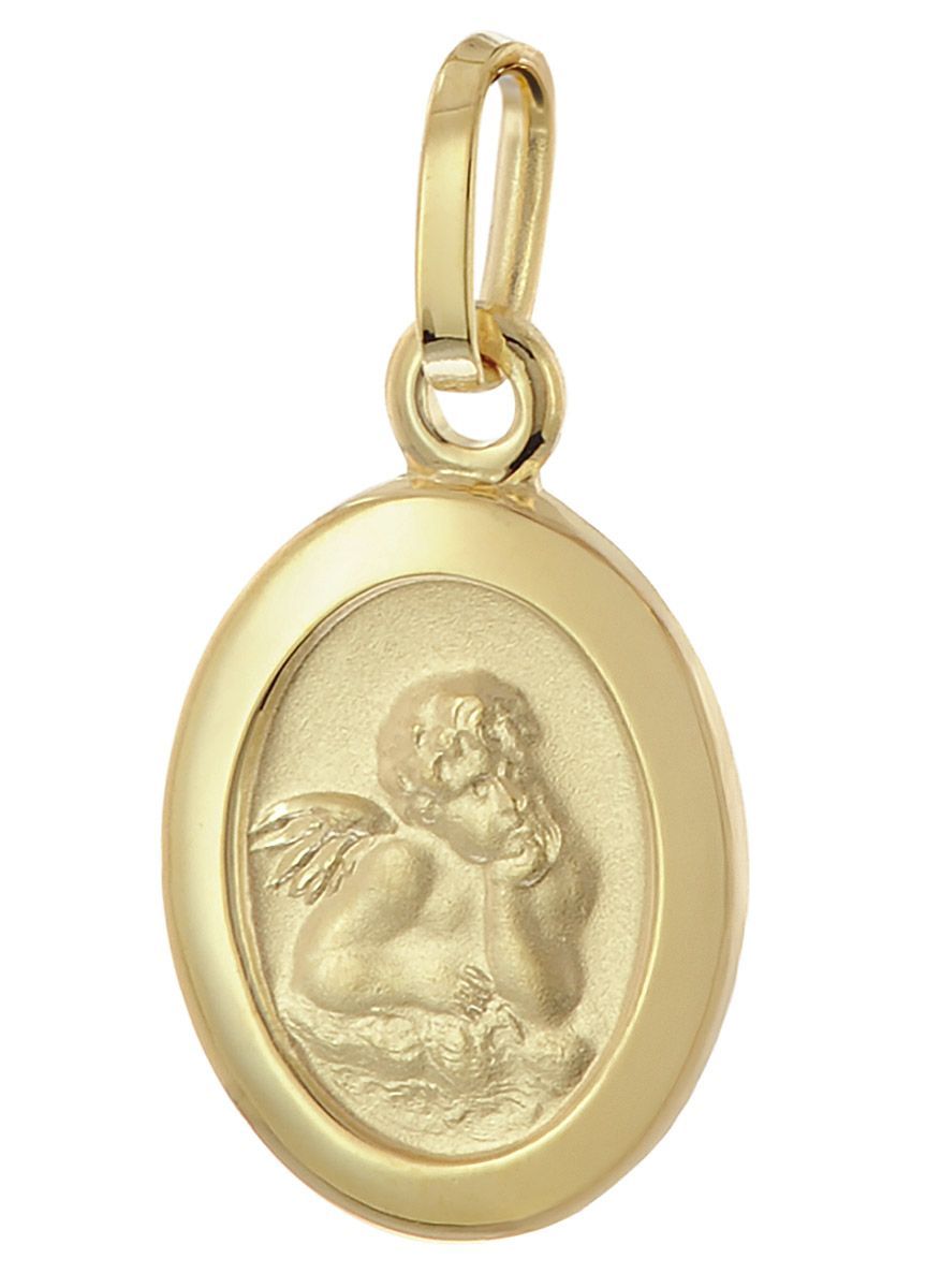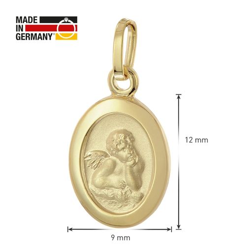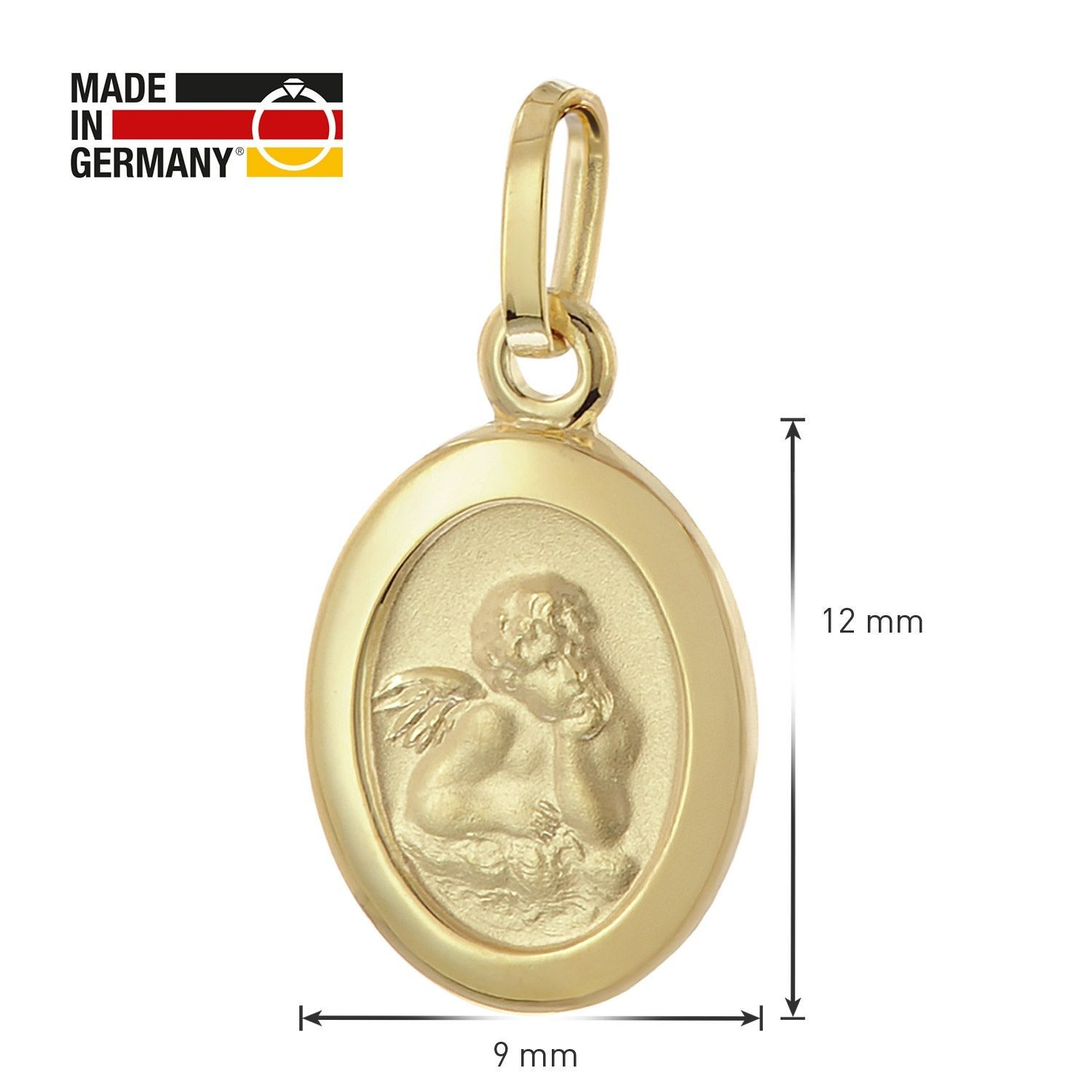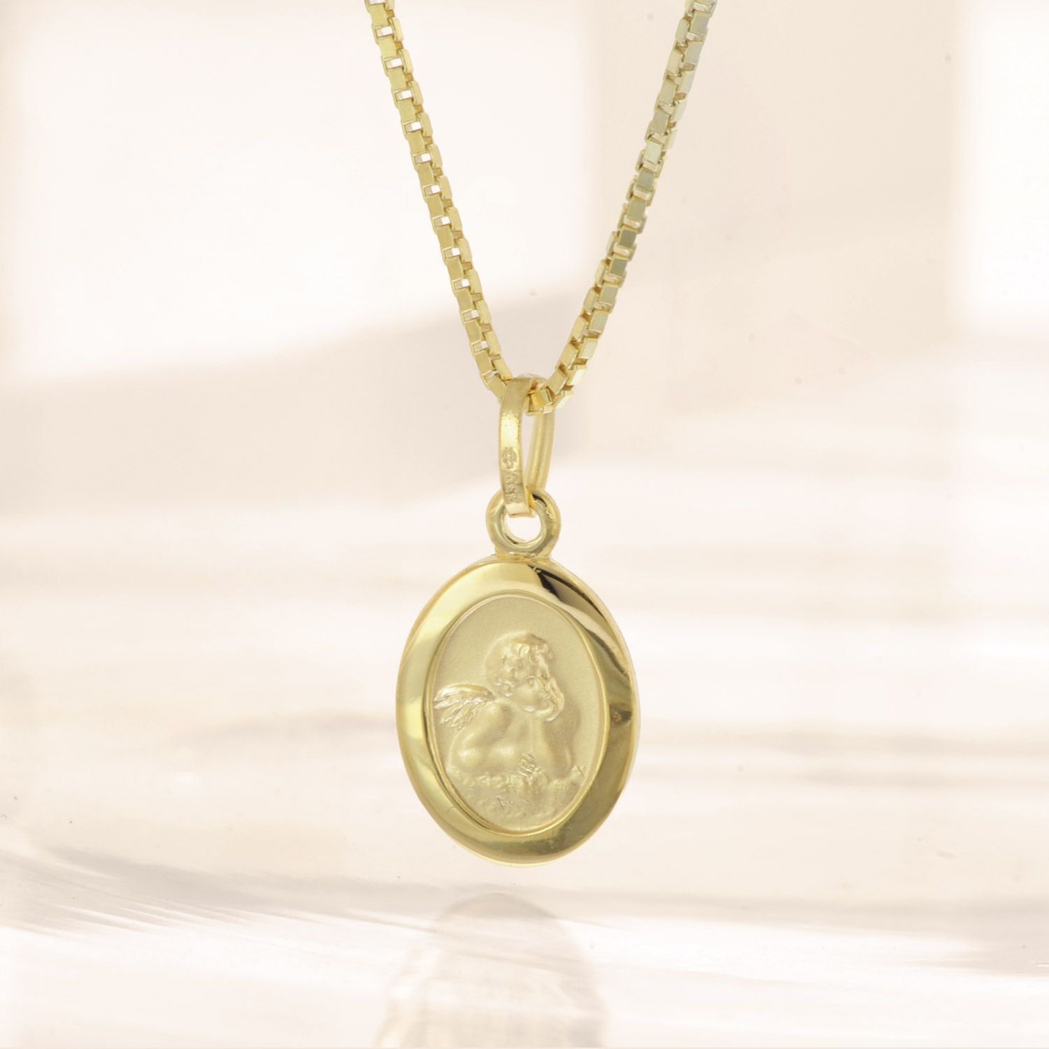 entzückende Halskette für Mädchen, ovaler Anhänger aus 8-Karat Gelbgold 333, mattierte Vorderseite mit Engel-Relief, polierter Rand, mattierte Rückseite, Anhängergröße (ohne Öse) 12 x 9 mm (LxB), Länge mit Schlaufe 18 mm, Venezianer Halskette aus goldplattiertem Sterlingsilber 925, Stärke 0,9 mm, Länge 40 cm, mit Zwischenöse auch 38 cm lang tragbar, Federring-Verschluss, Made in Germany, Lieferung inklusive Mikrofaser-Pflegetuch