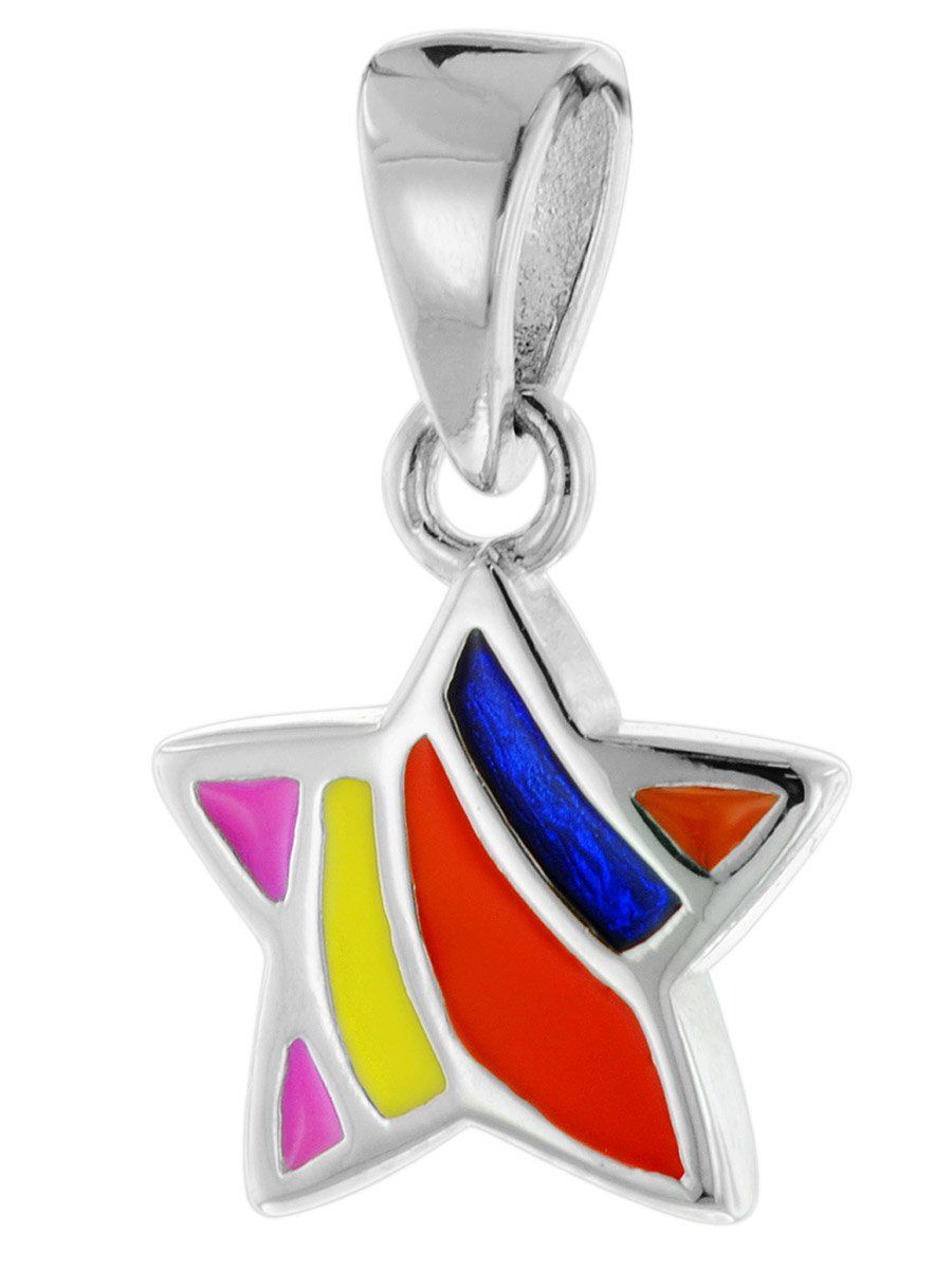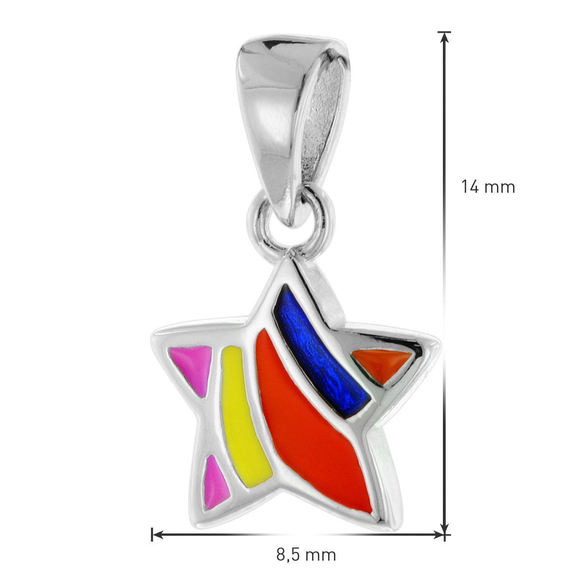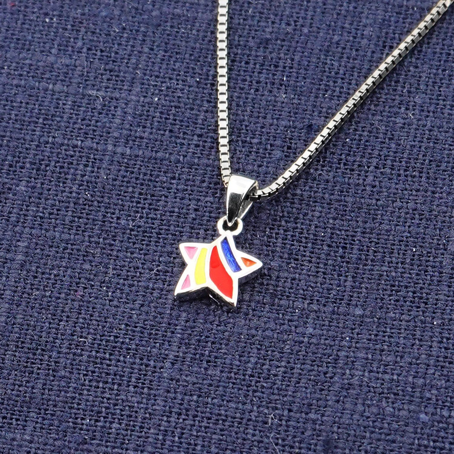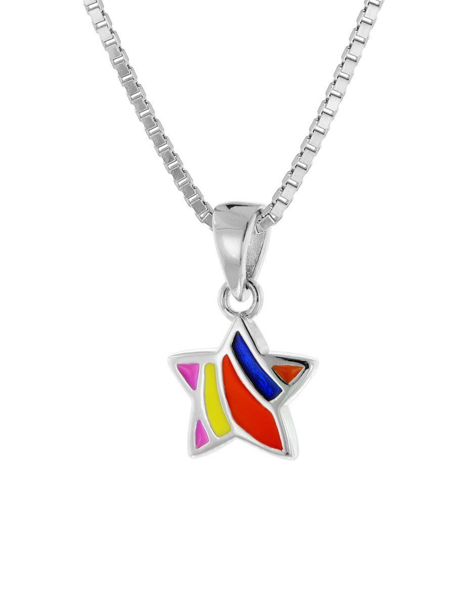 Halskette für Mädchen mit buntem Stern-Anhänger, Sterlingsilber 925, rhodiniert, anlaufgeschützt, Venezianer Collierkette, Stärke 0,9 mm, Länge 40 cm, mit Zwischenöse auch 38 cm lang tragbar, Federring-Verschluss, mehrfarbig emaillierter Stern-Anhänger, Anhängergröße (mit Schlaufe) 14 x 8,5 mm, Lieferung inklusive einem Mikrofaser Putz- und Pflegetuch