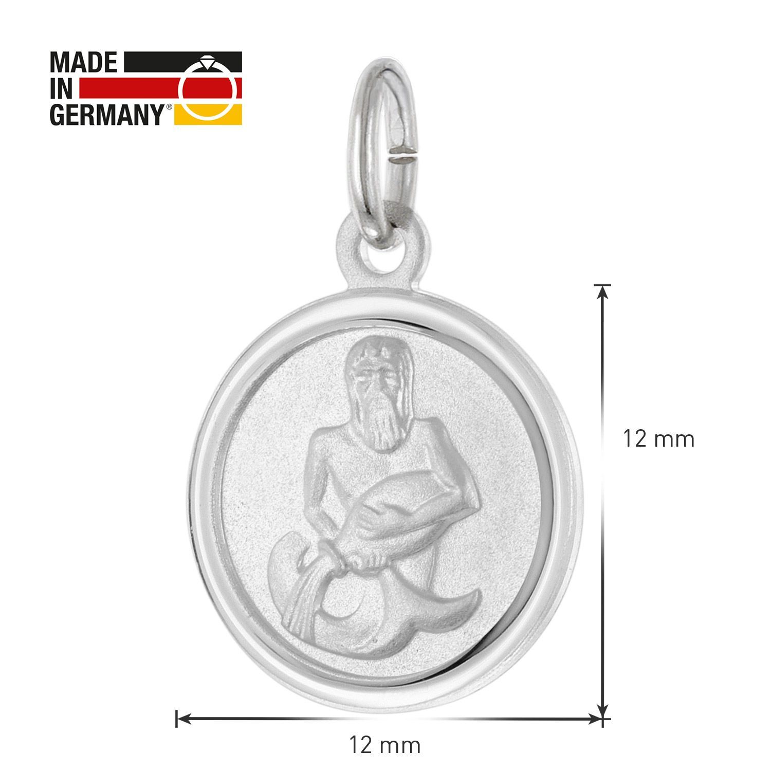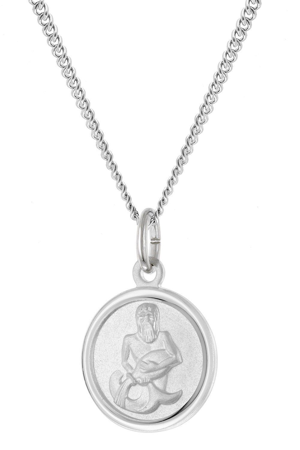 Halskette mit Anhänger Tierkreiszeichen Wassermann (21.01.-19.02.), aus rhodiniertem Sterlingsilber 925, die Rhodium-Auflage bietet Anlaufschutz und bringt strahlenden Glanz, zierlicher Anhänger, mattiert mit poliertem Rand, erhabenes Wassermann Sternzeichen-Motiv, Durchmesser 12 mm, an einer feinen, stabilen Flachpanzer-Halskette, Breite 1,2 mm, Federring-Verschluss, hochwertig verarbeitet, Lieferung inklusive Mikrofaser-Pflegetuch