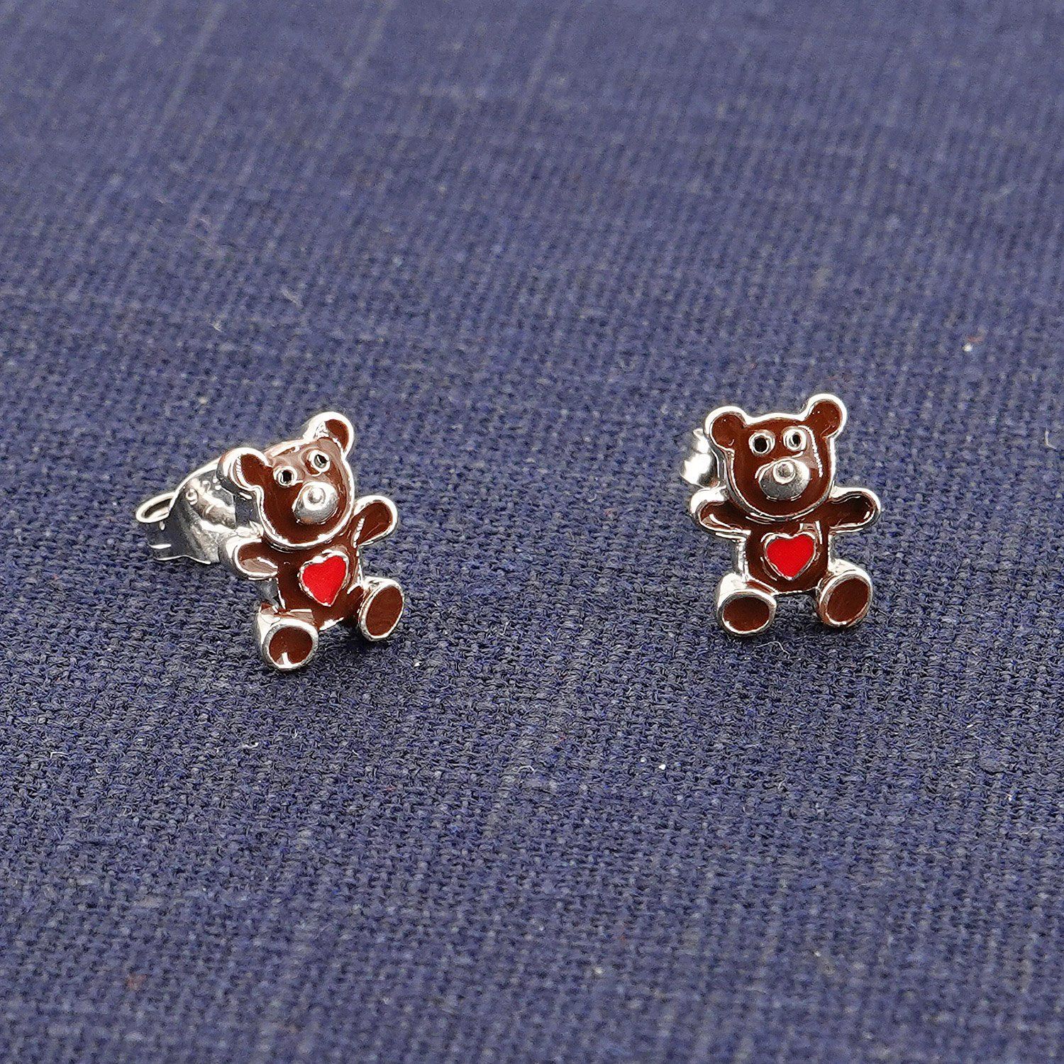 trendor Schmuck Kinder-Ohrringe Silber 925 Teddybär Ohrstecker 41647