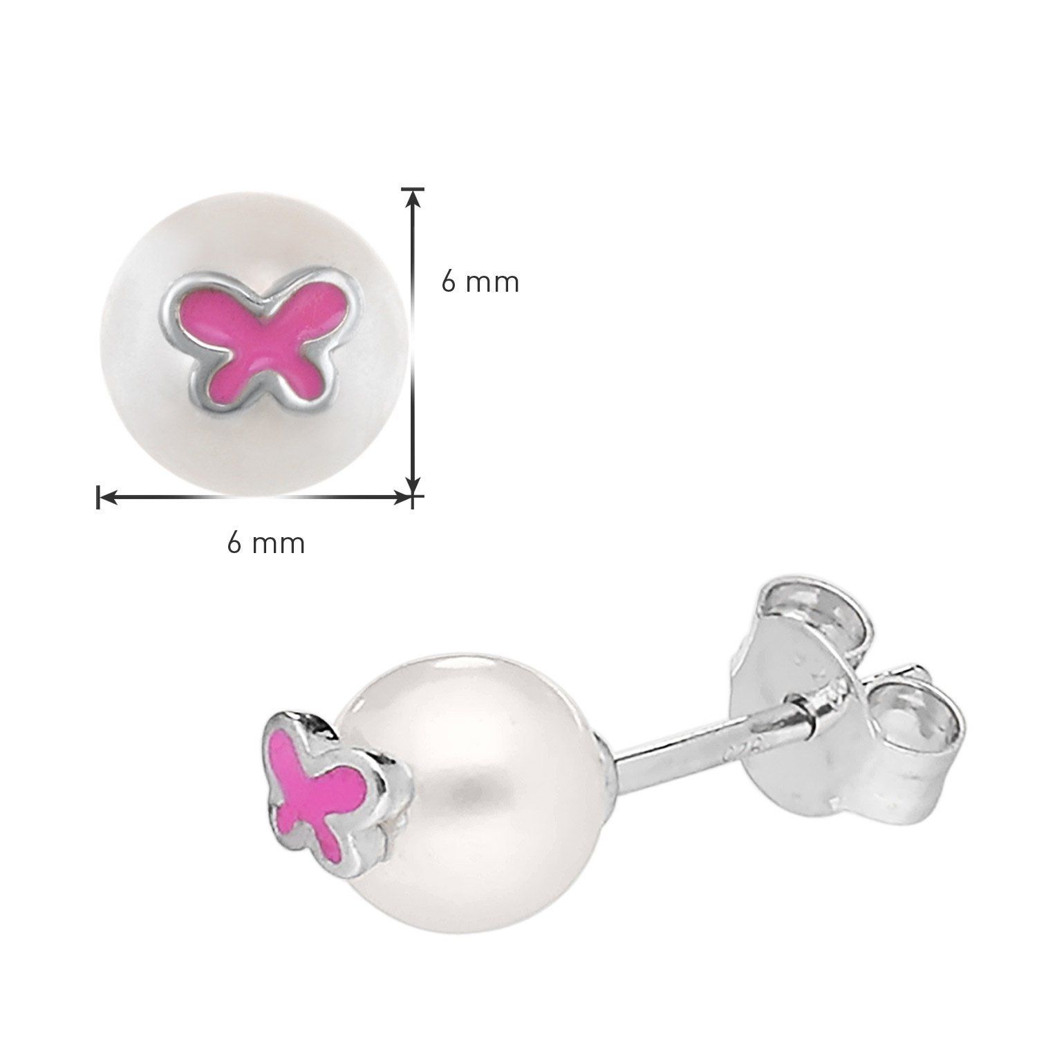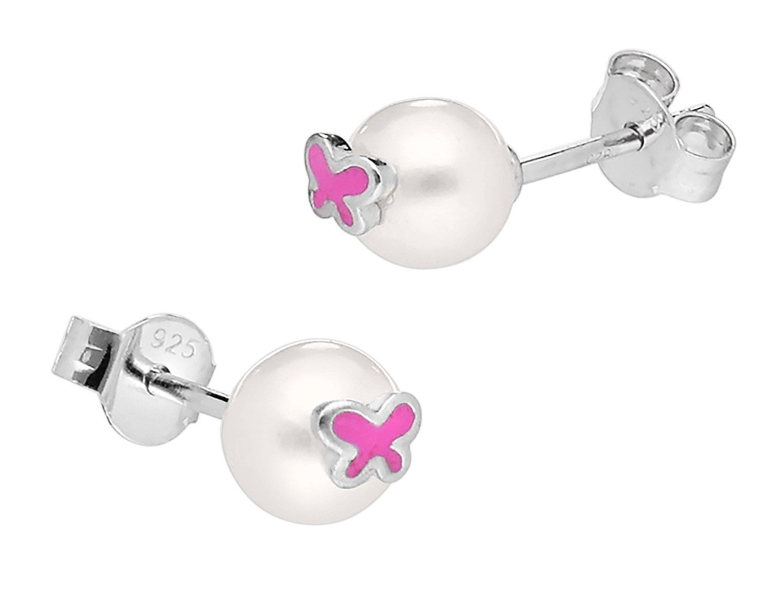 trendor Schmuck Kinder Perlen-Ohrringe 925 Silber Ohrstecker Schmetterling 41599