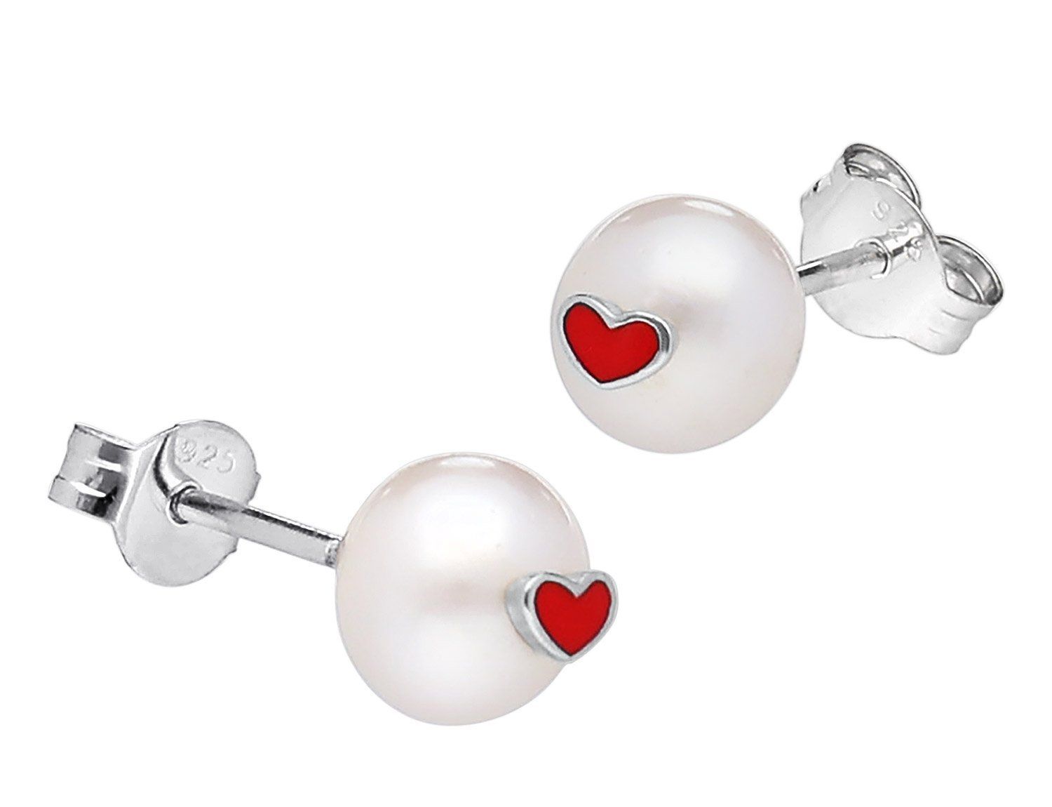 trendor Schmuck Kinder Perlen-Ohrringe Silber 925 Herzchen 41600