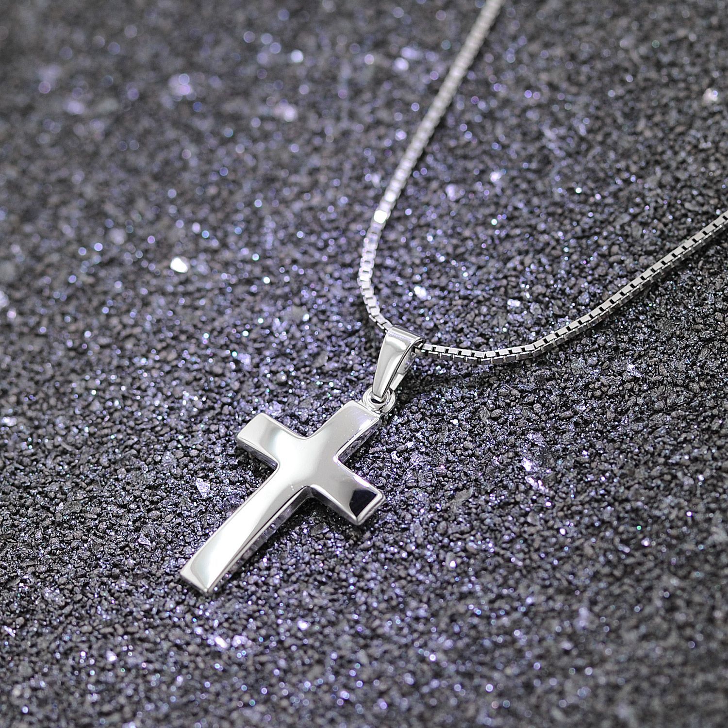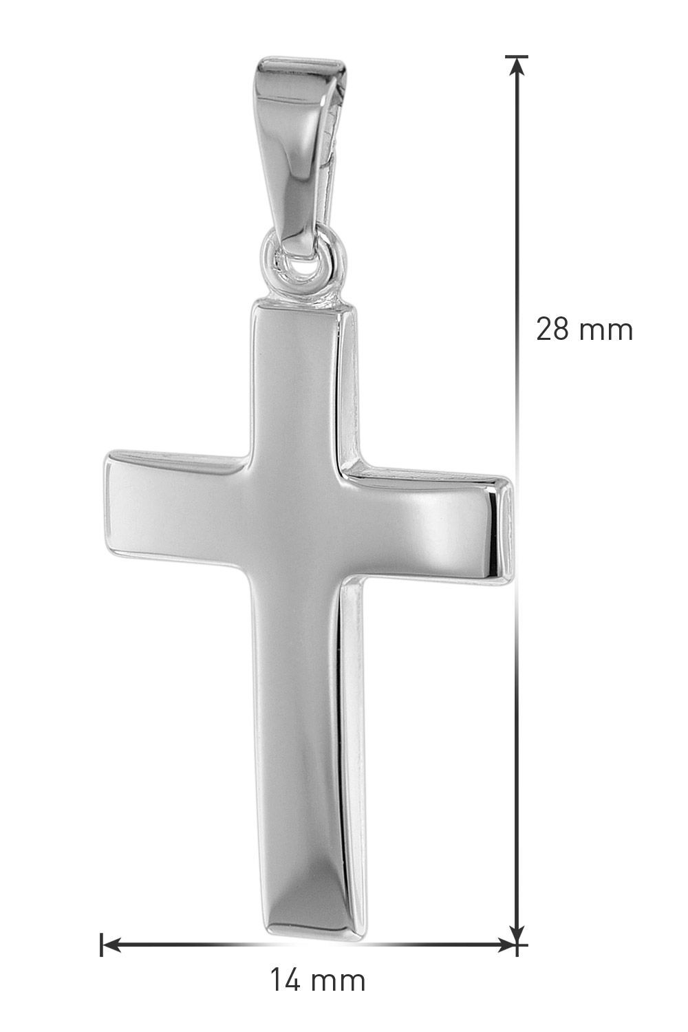 Schmuckset mit Kreuz in 8-karätigem Weißgold 333, und einer Halskette aus Sterlingsilber 925, Kreuz-Anhänger aus Weißgold 333 (8 Karat), hochglanzpolierte Vorderseite, Rückseite mattiert, Größe (ohne Öse und Schlaufe) 21 x 14 x 1,6 mm, Gesamtlänge 28 mm, Venezianer-Halskette aus Sterlingsilber 925, Stärke 0,9 mm, Federring-Verschluss, Made in Germany, inklusive einem Mikrofaser Putz- und Pflegetuch