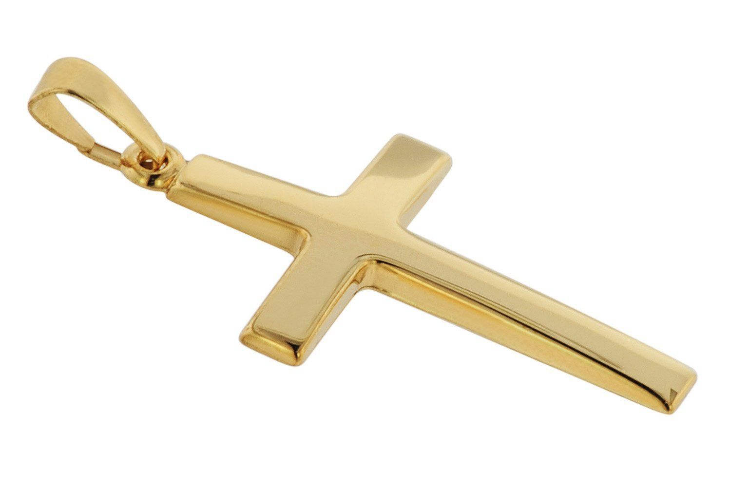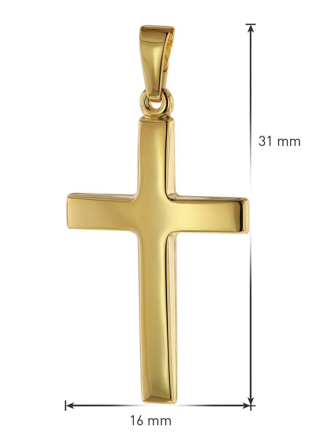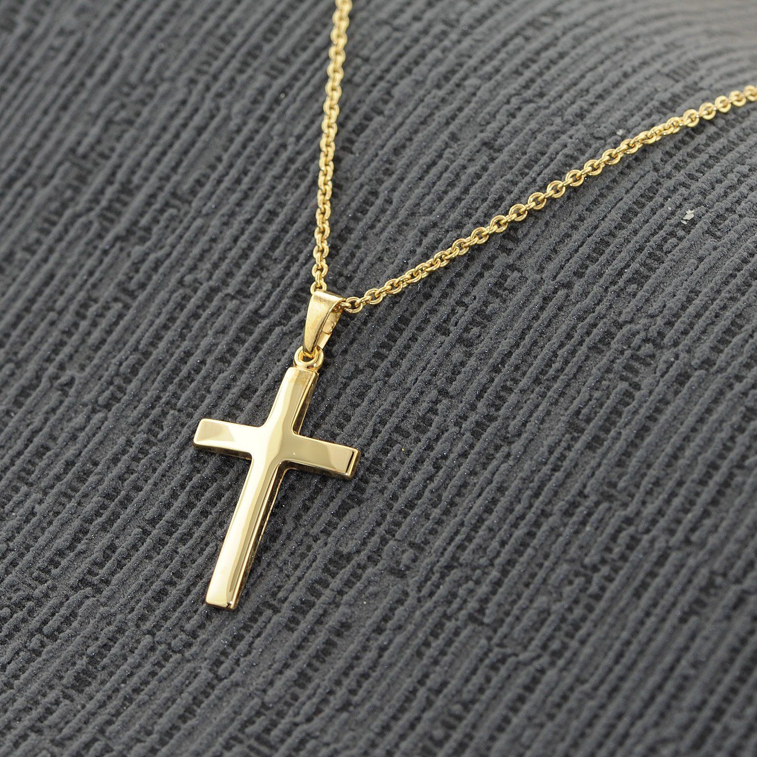 trendor Schmuck Kreuz-Anhänger 24 mm Gold 585 + Silberkette goldplattiert 75543