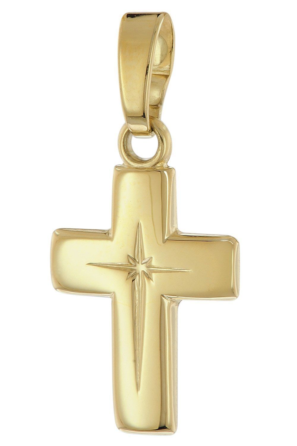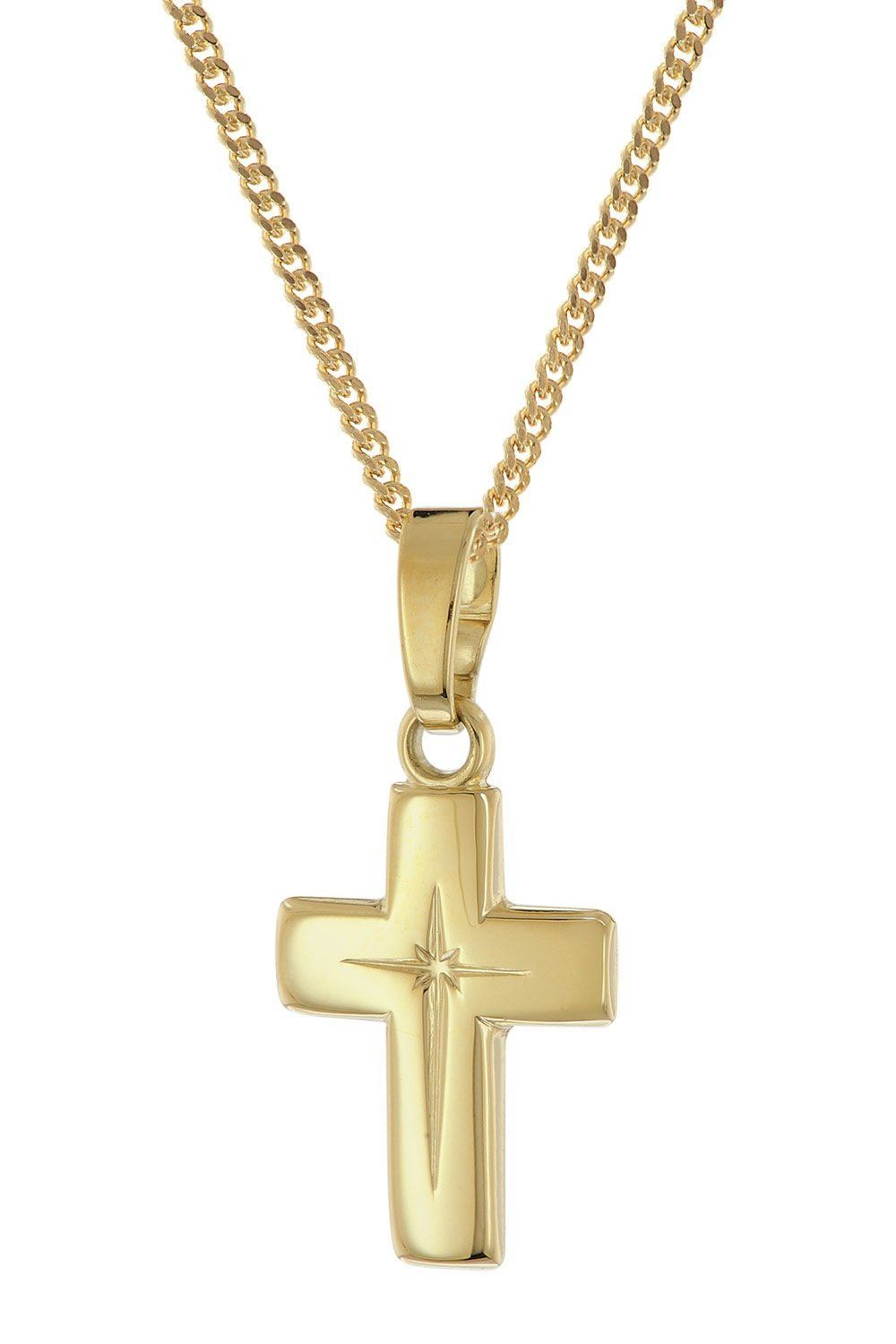 trendor Schmuck Kreuz-Anhänger für Kinder Gold 585/14K mit goldplattierter Kette 283