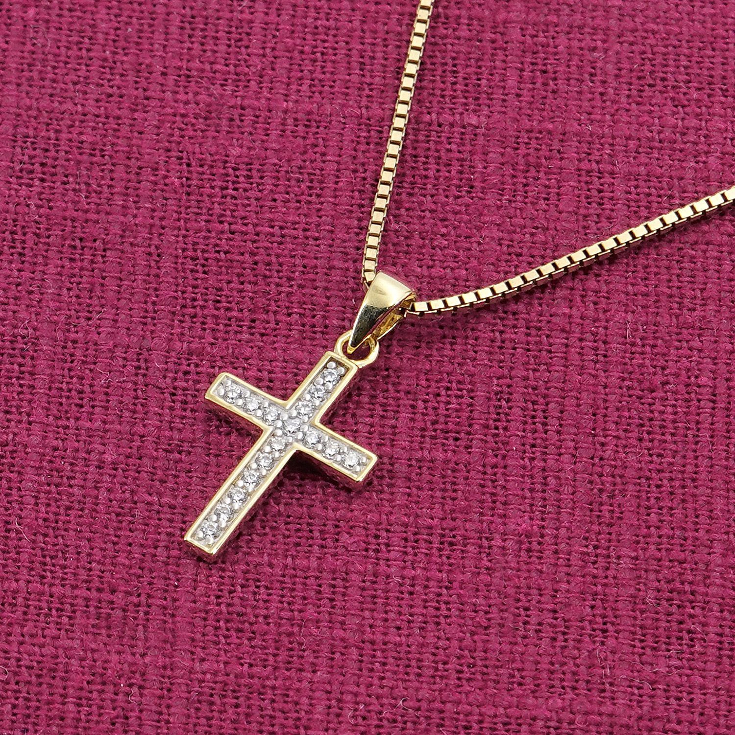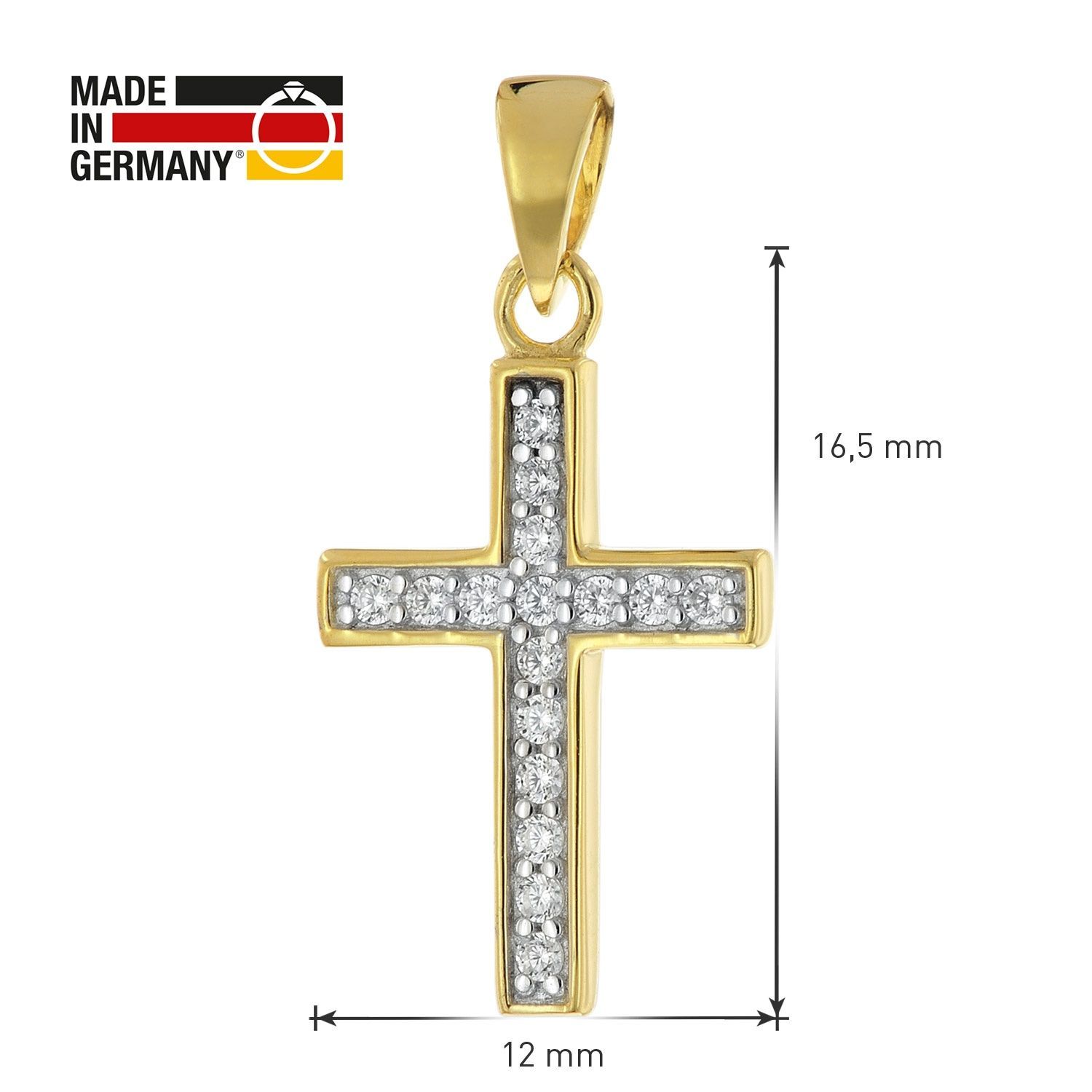 trendor Schmuck Kreuz-Anhänger für Mädchen Gold 585 + vergoldete Silberkette 15907