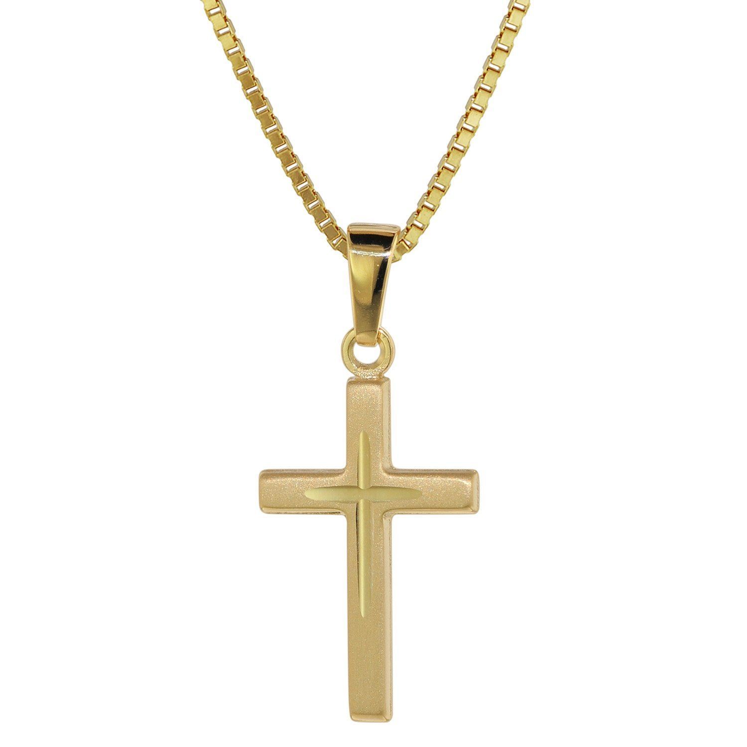 trendor Schmuck Kreuz-Anhänger Gold 585 (14 Kt.) + Goldplattierte Kette 75276