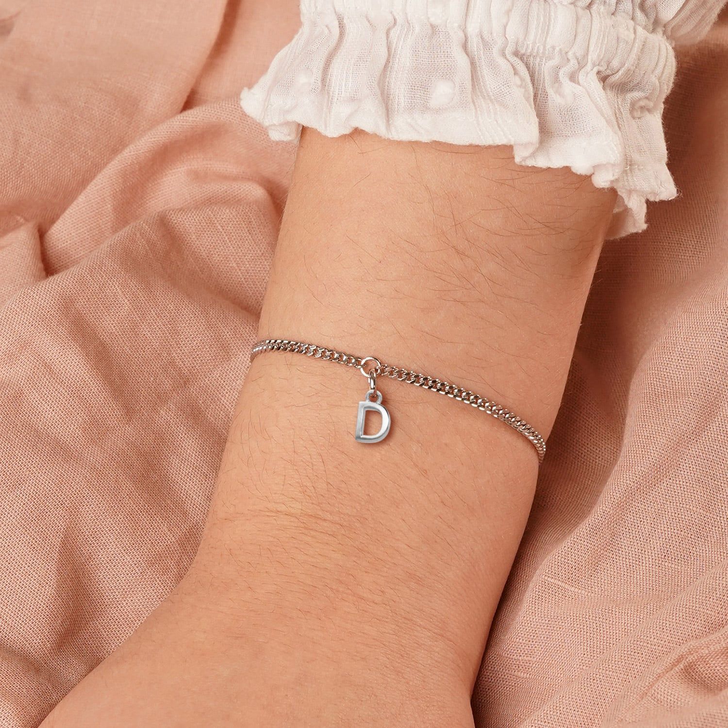 trendor Schmuck Mädchen-Armband mit Buchstabe D 925 Silber Rhodiniert 21590-D