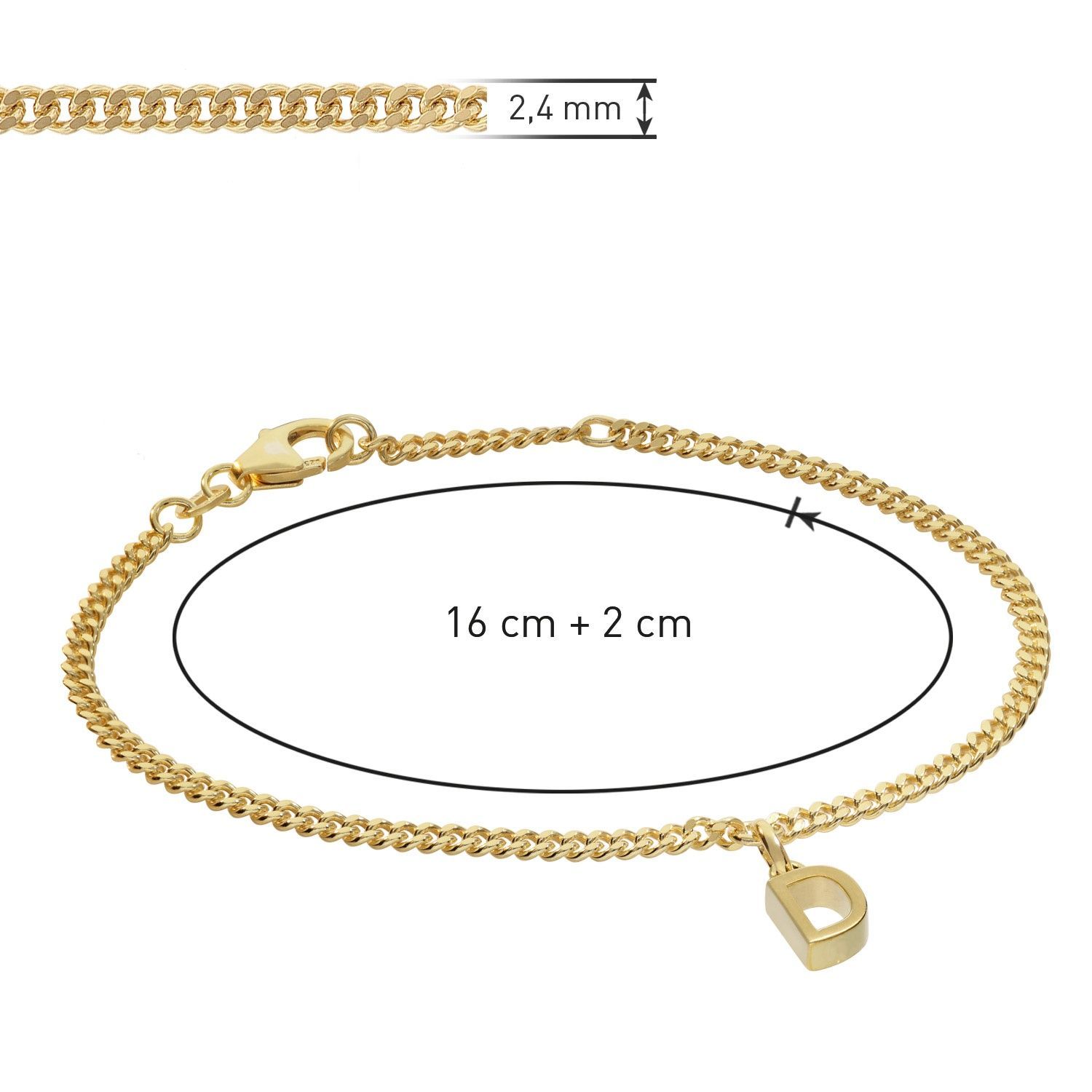 trendor Schmuck Mädchen-Armband mit Buchstabe D 925 Silber Vergoldet 21602-D