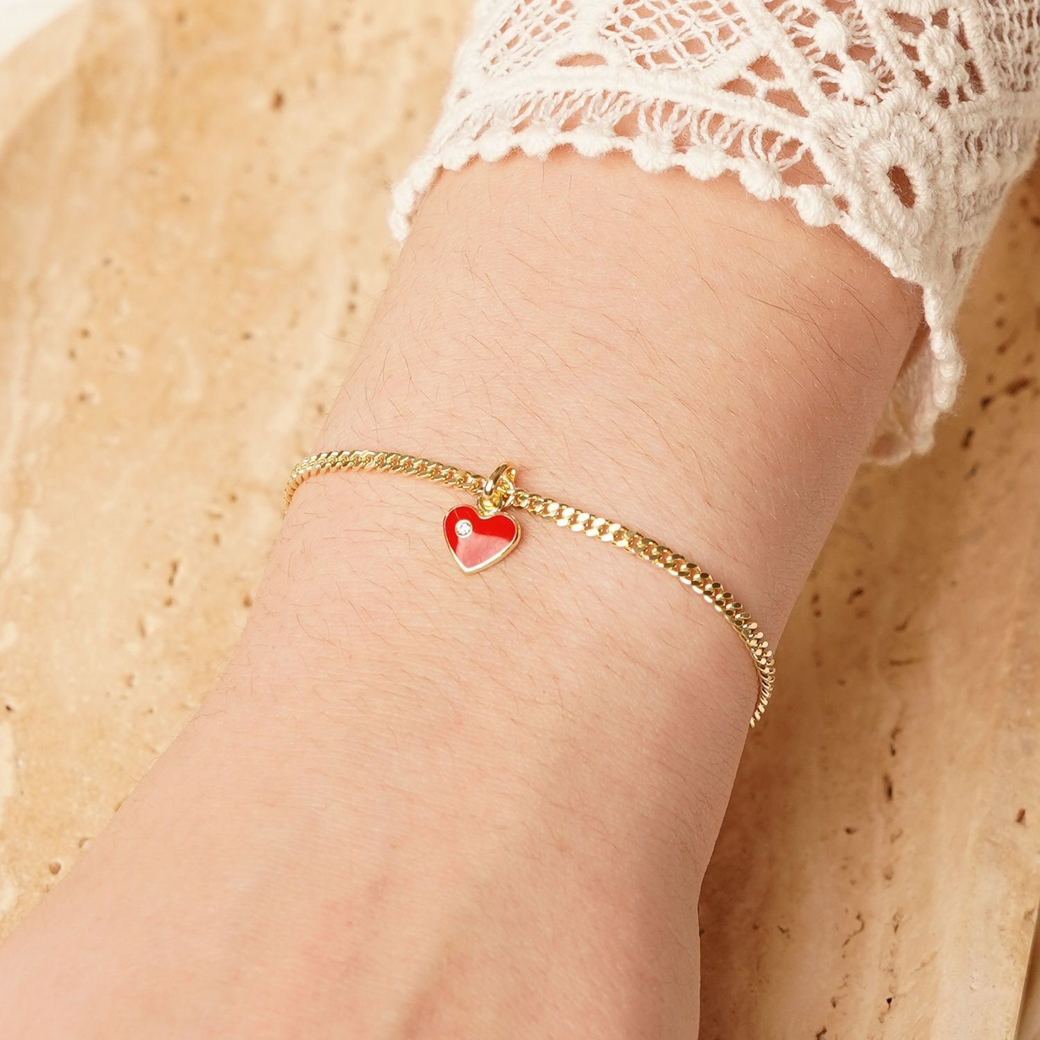 trendor Schmuck Mädchen-Armband mit Herz-Anhänger 925 Silber Vergoldet 21620
