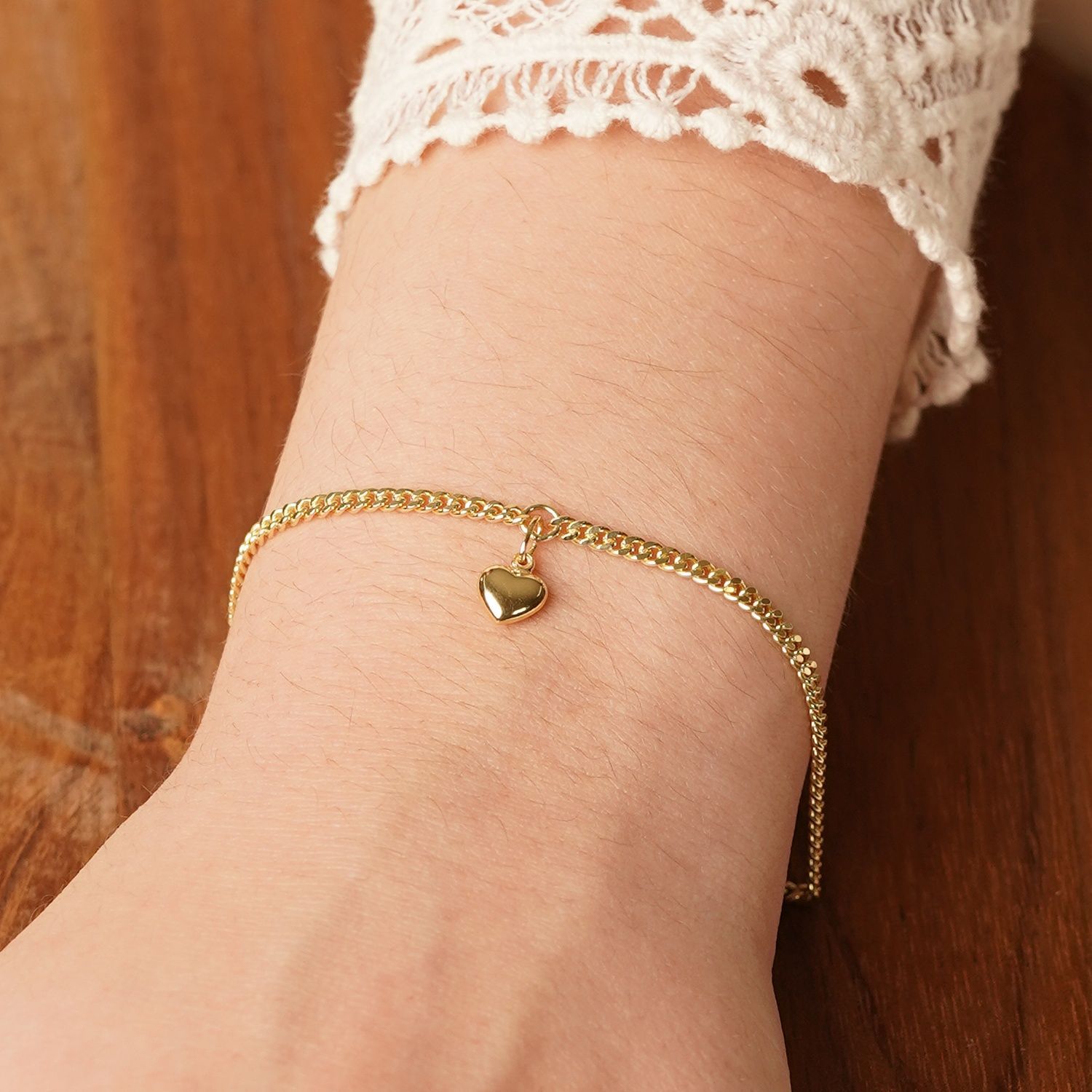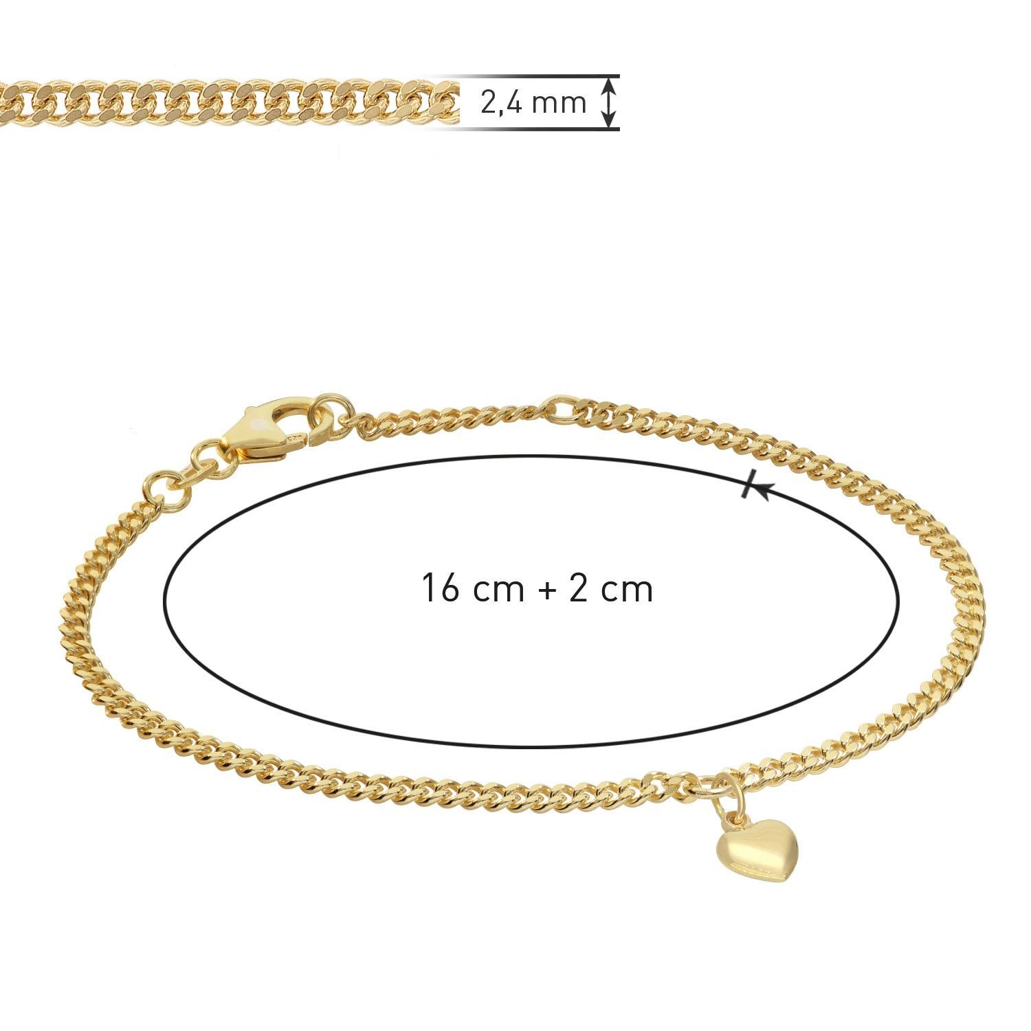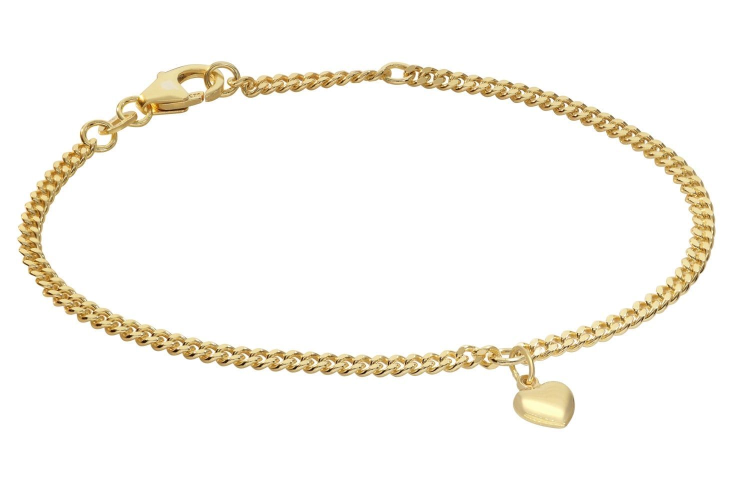 Mädchen-Armband 925 Silber Vergoldet Panzerband mit Herzchen, stabiles Armband mit Herz-Anhänger, aus vergoldetem Sterlingsilber 925, anschmiegsames Flachpanzerband, diamantiert und hochglanzpoliert, Länge 18 cm mit Zwischenöse bei 16 cm, Breite 2,4 mm, einfach bedienbarer Karabinerverschluss, polierter Herz-Anhänger, Größe (ohne Ösen) 6,5 x 6,5 mm, Lieferung mit einem Mikrofaser-Pflegetuch