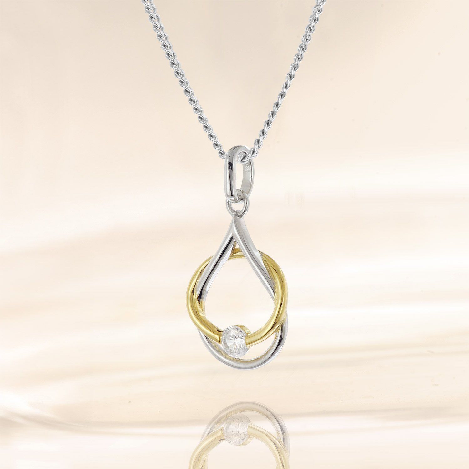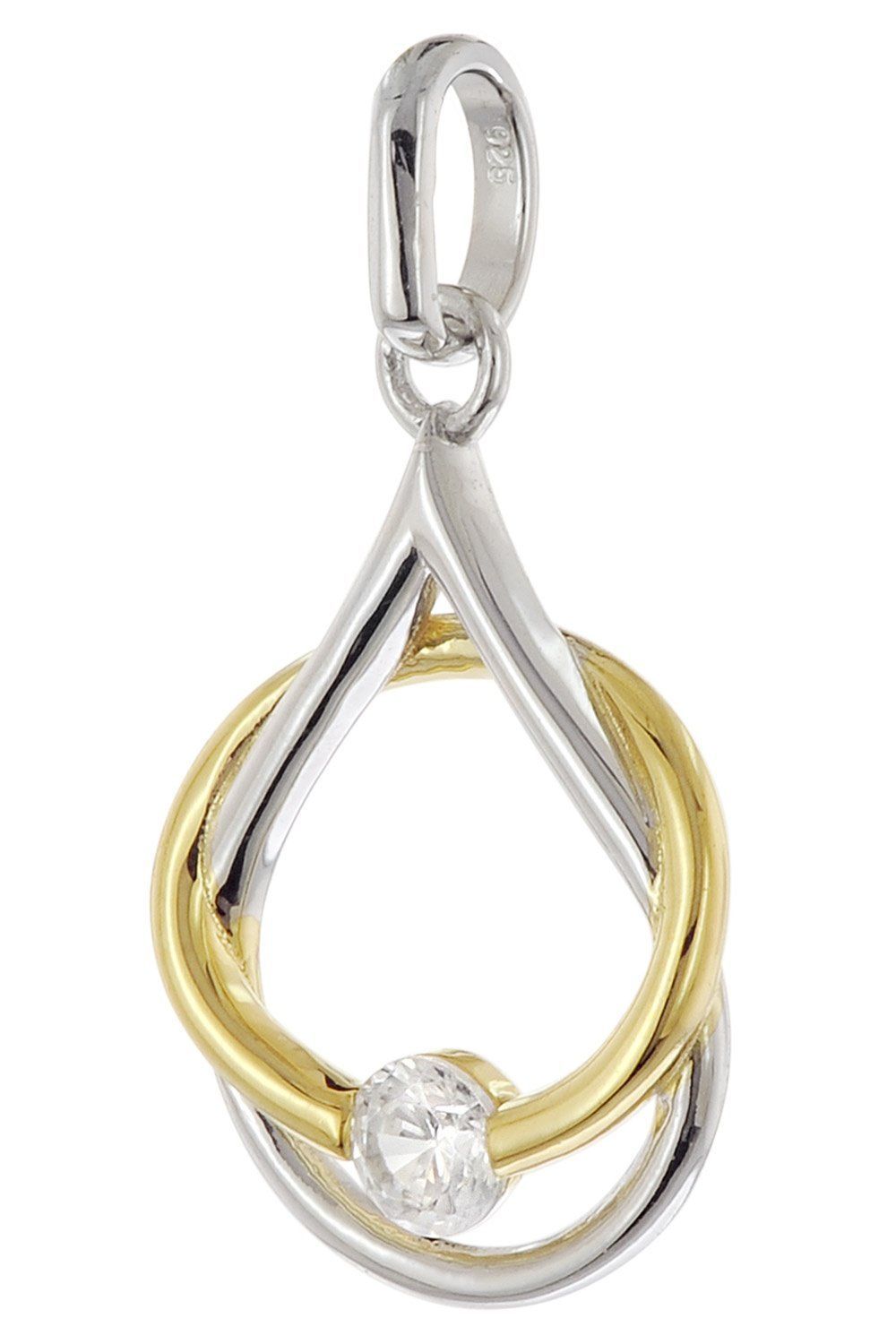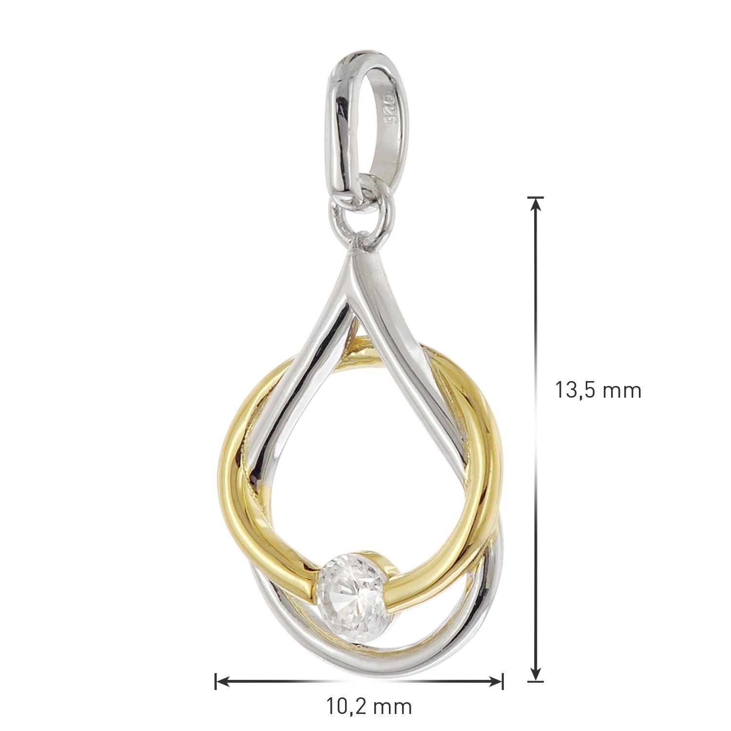 Halskette mit Fantasie-Anhänger für Damen und Mädchen, aus vergoldetem und rhodinierten Sterlingsilber 925, zierlicher zweifarbiger Anhänger mit einem funkelnden klaren Zirkonia, Anhänger-Größe (ohne Schlaufe) 13,5 x 10,2 mm, stabile Flachpanzer-Kette, aus rhodiniertem Sterlingsilber 925, die Rhodium-Auflage bietet Anlaufschutz und bringt strahlenden Glanz, Breite 1,4 mm, Länge 40 cm, in der Zwischenöse auch 38 cm lang tragbar, Federring-Verschluss, Lieferung inklusive Mikrofaser-Pflegetuch