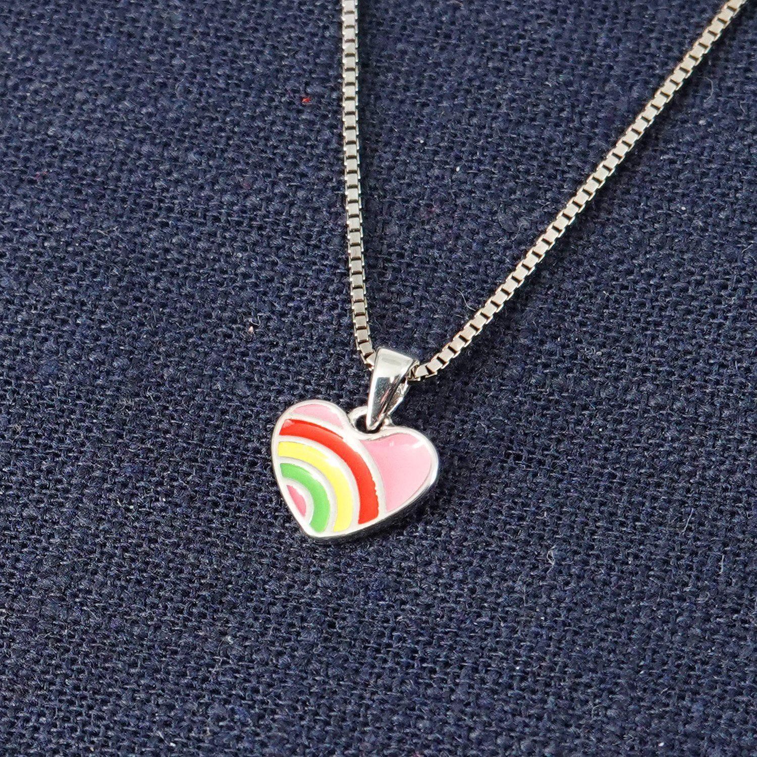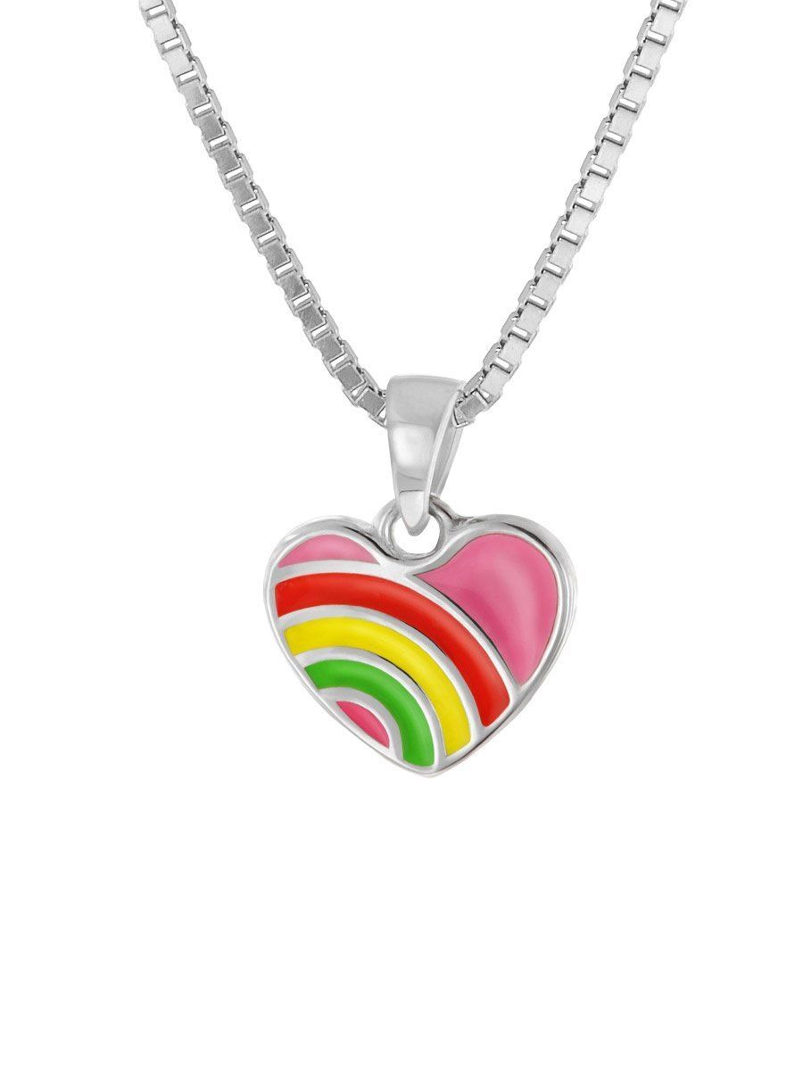 Halsschmuck für Kinder aus poliertem Sterlingsilber 925, rhodiniert, anlaufgeschützt, Venezianer Collierkette, Stärke 0,9 mm, Länge 40 cm, mit Zwischenöse auch 38 cm lang tragbar, Federring-Verschluss, bunt emailliertes Herz als Anhänger, Anhängergröße (mit Schlaufe) 12,5 x 10,5 mm, Lieferung inklusive einem Mikrofaser Putz- und Pflegetuch
