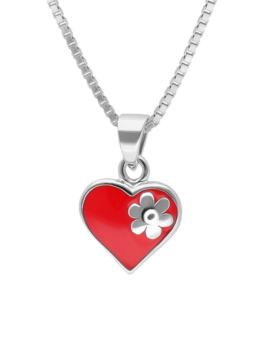 trendor Schmuck Mädchen-Halskette Silber 925 Collier mit Herz-Anhänger 41680