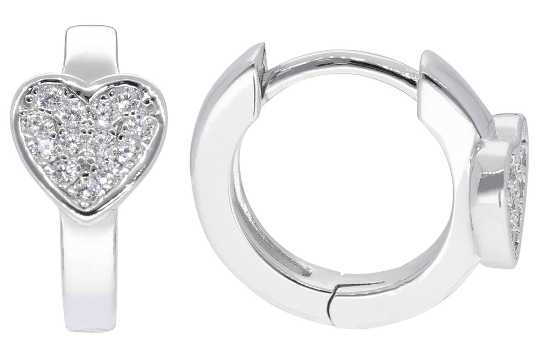 trendor Schmuck Mädchen-Ohrringe 925 Silber Klapp-Creolen mit Herz 68194