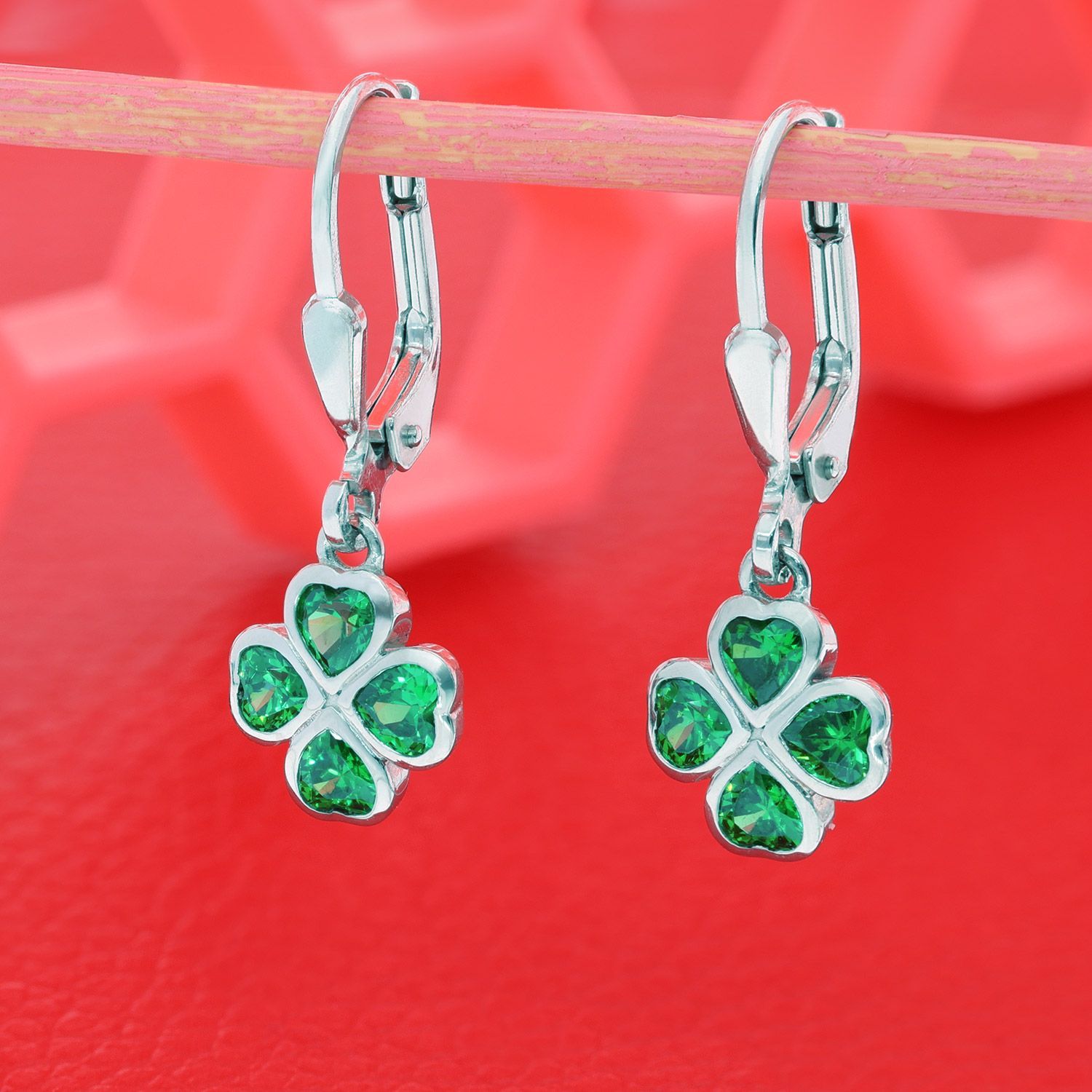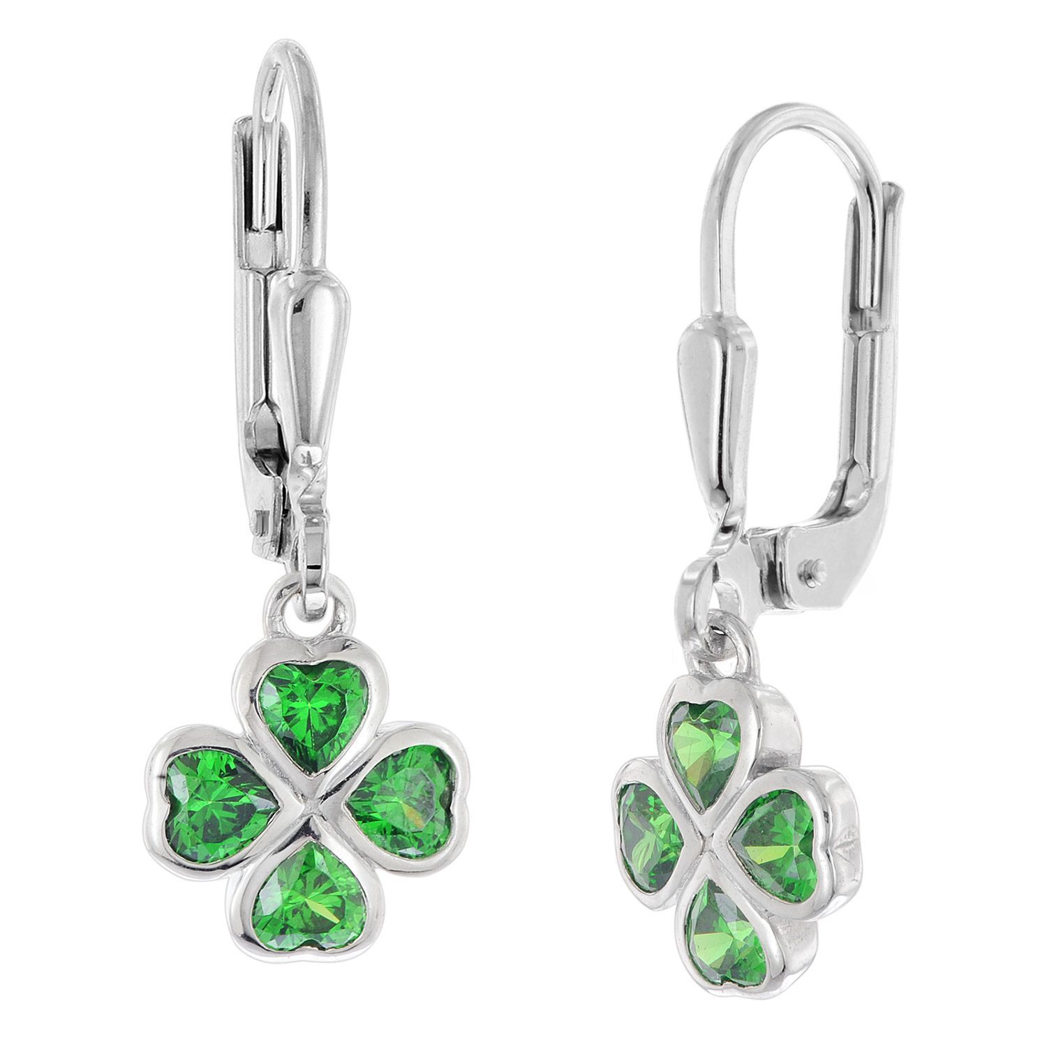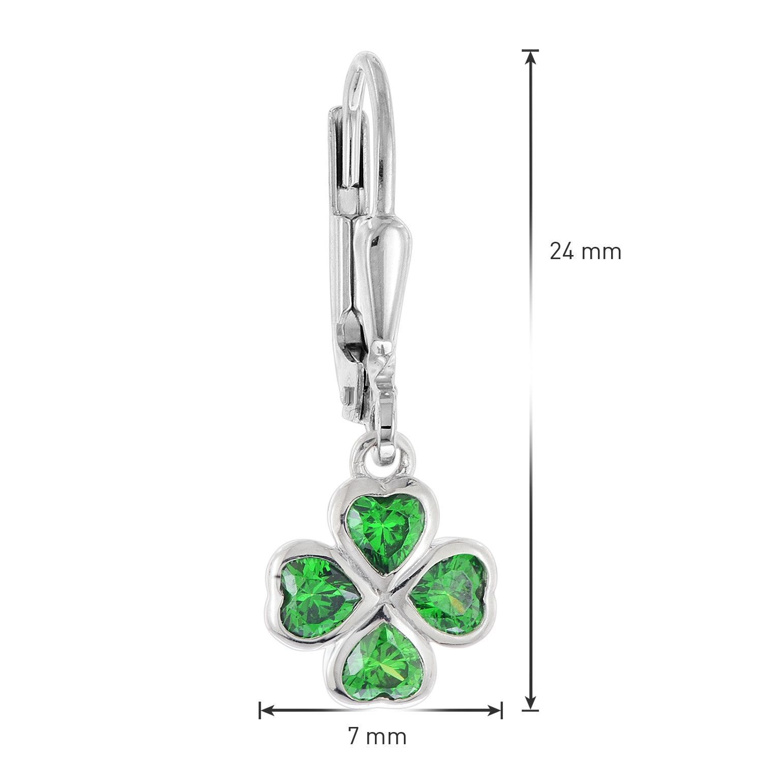 trendor Schmuck Mädchen Ohrringe 925 Silber Ohrhänger mit grünem Kleeblatt 21141